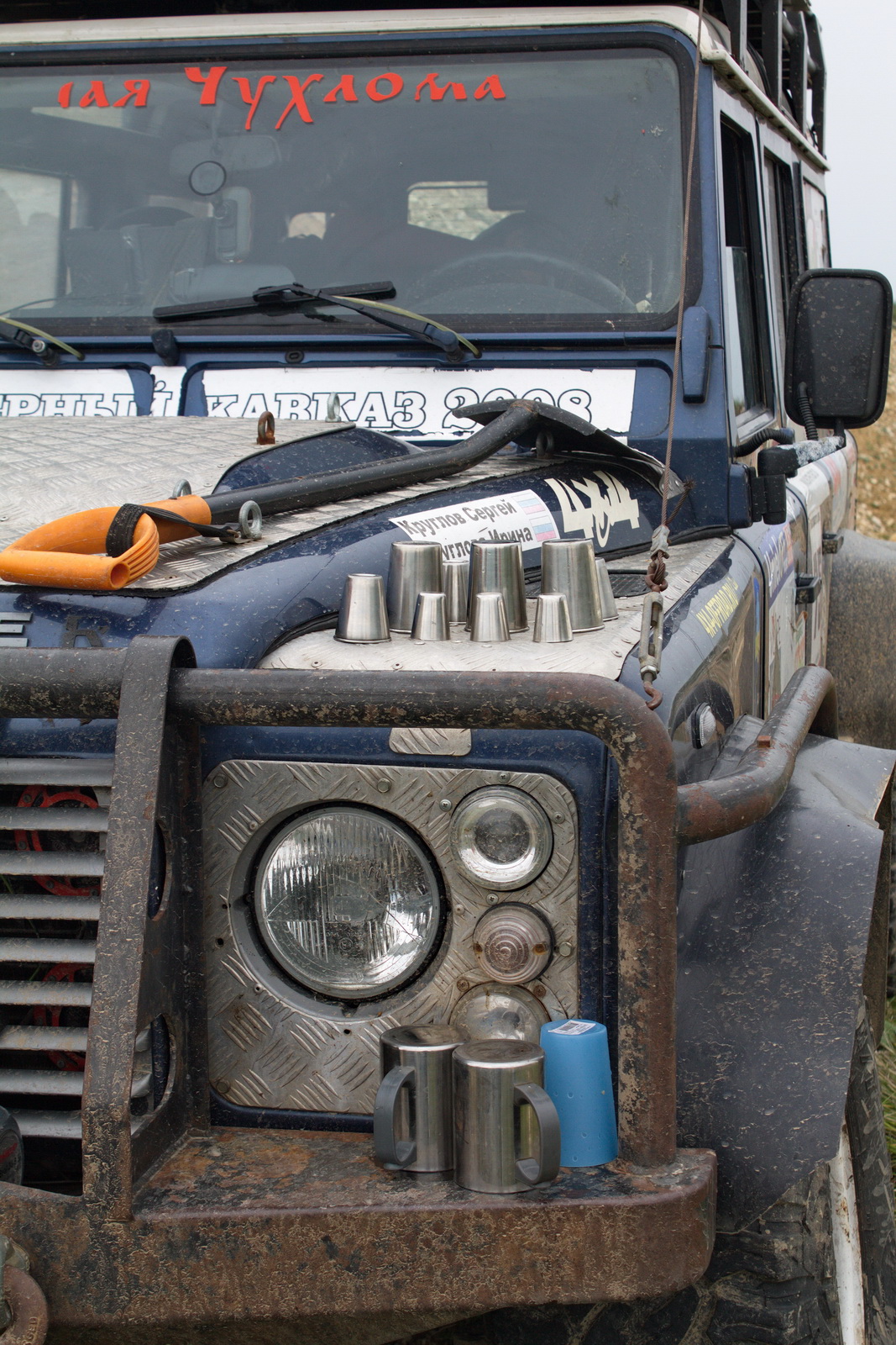 Погодка не располагала к поездкам в горы, но цель была поставлена. Дорожка местами была – идеальный асфальт, местами – приличный грейдер. На встречу попадались «пузотёрки», что наводило на мысль «мы уж точно проедем». Приподнятое настроение погода немного «обломала», когда уже высоко в горах нас застал ливень с градом. Путь стал скользким… Рулить страшновато. Участок размешанной грязи, попавшийся на пути, удивил. Как тут могли проехать легковушки, если «буханка» проехала, буксуя, а мы на Прадике прошли не с первого раза (но самостоятельно). Понятно, что Ёжику эта грязь была даже не по колено, а по щиколотку его Дефа. Преодолев грязку, упёрлись в полянку со строительными вагончиками. Лил дождь. За бортом каких-то несчастных +6. Вылезать из машины не хотелось ни разу, а разговора о палатках вообще слышать. Наши «разведчики» доложили обстановку: «Это тупик. Дальше база, где нам могут предоставить ночлег в охотничьем домике на 10 кроватей». Условия, конечно, не гостиница одна звезда, но и не в мокрой палатке (что не могло не радовать). Коллектив подобрался - юморист на юмористе, потому даже прочтение детской сказки «Зимовье» доводило до слез от смеха. Книжка, кстати, осталась от предыдущих постояльцев. Они, наверно, тоже её на ночь читали.