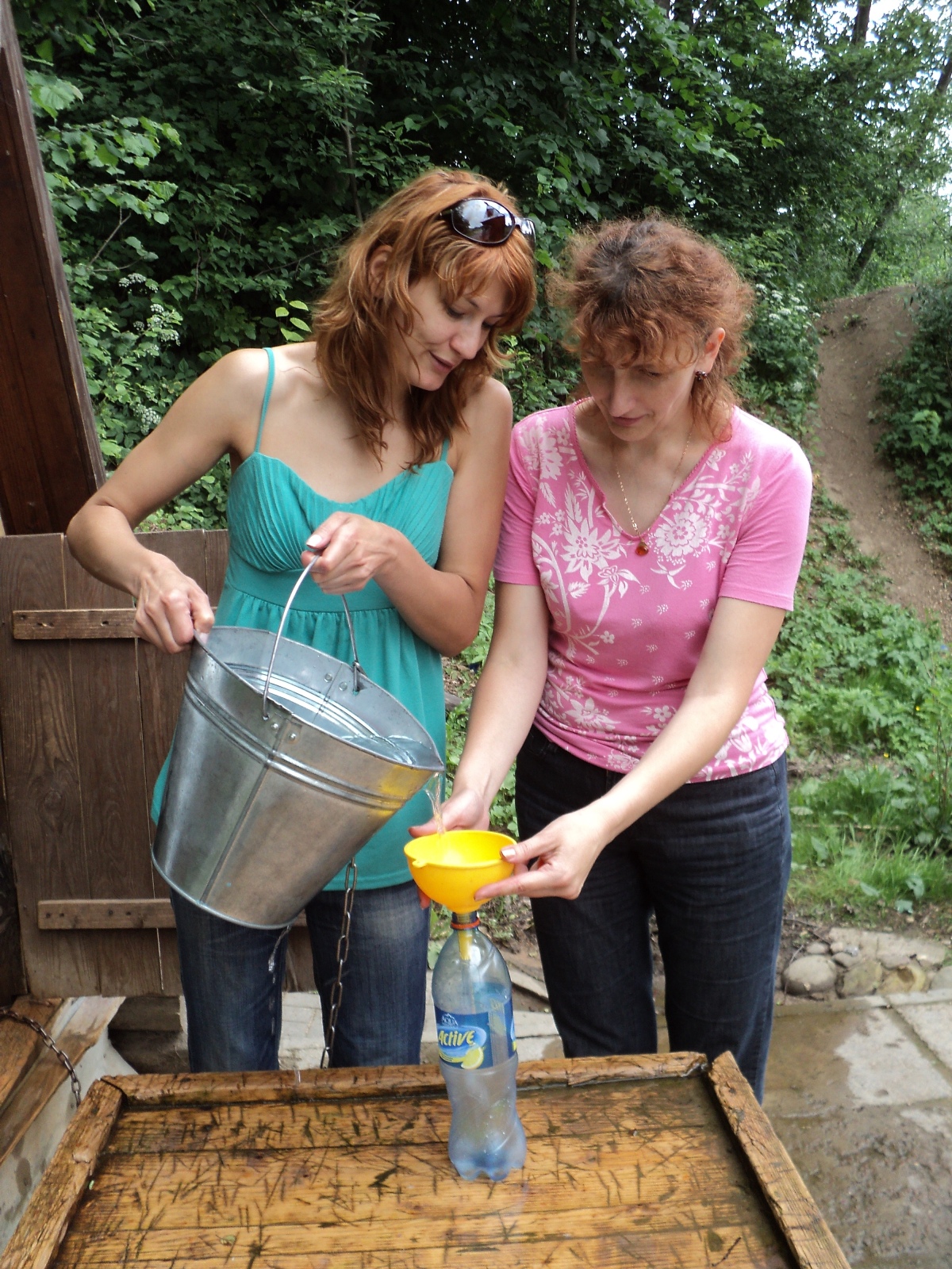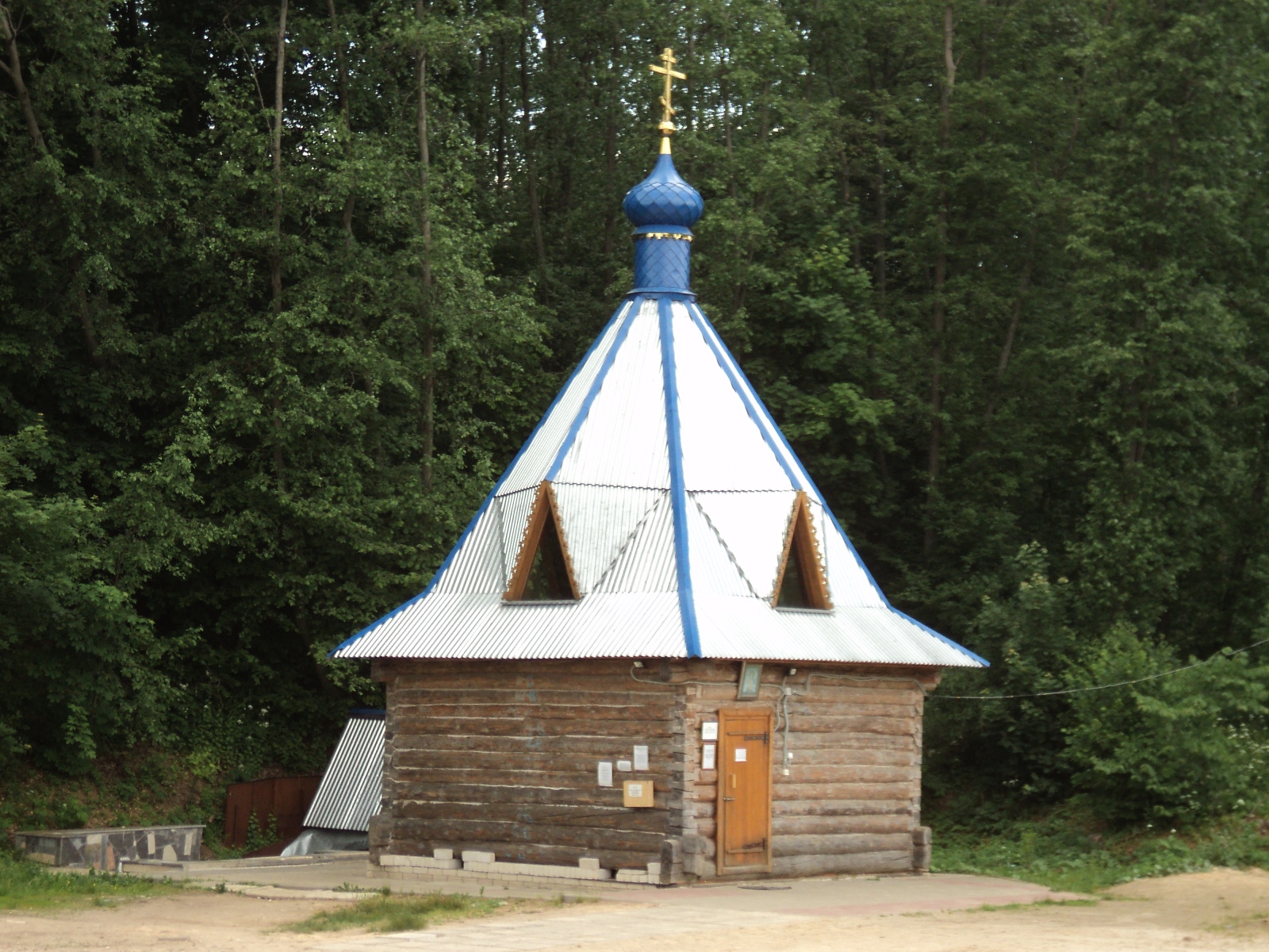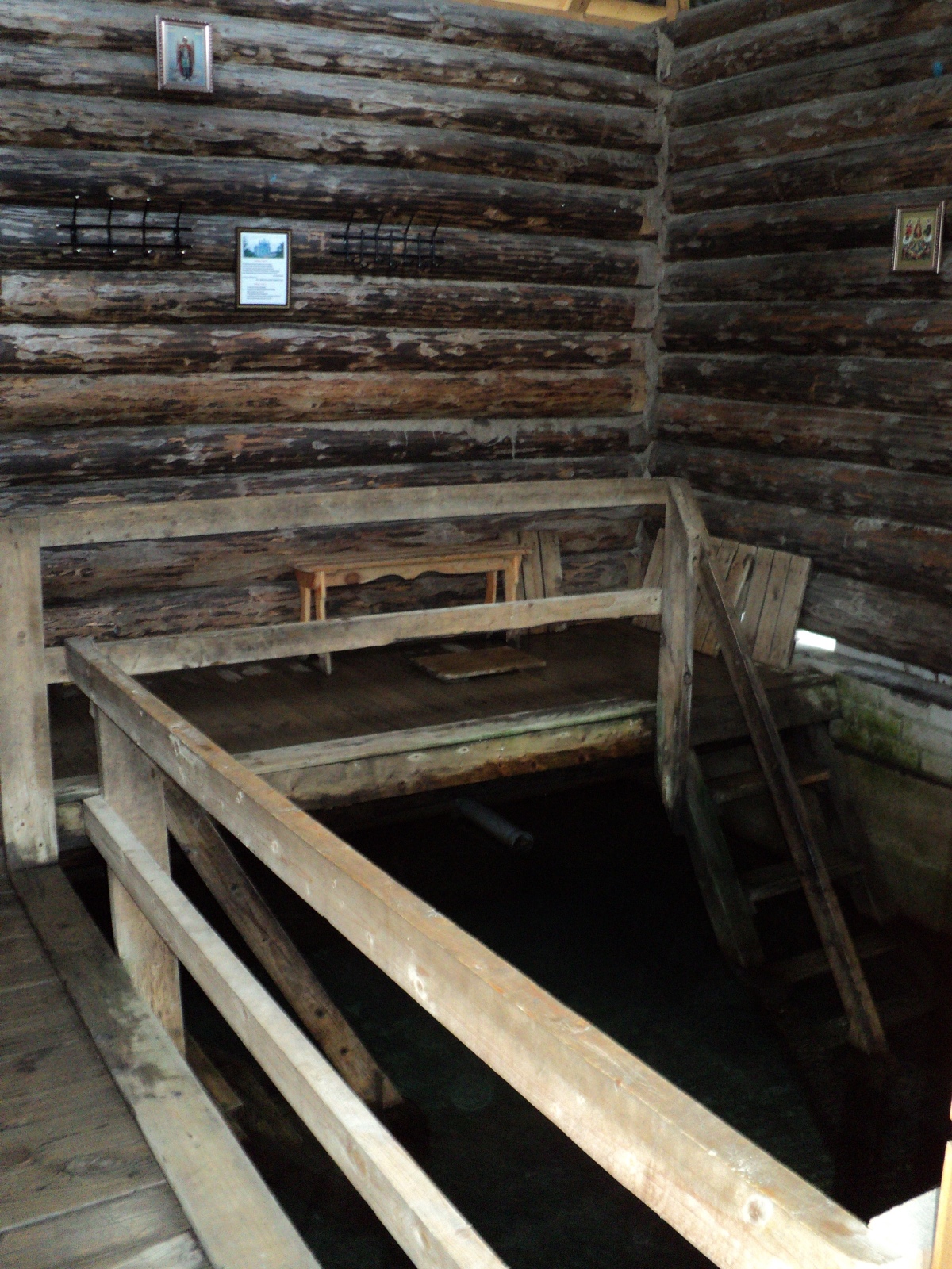 На момент нашего приезда в купели никого не было, и удалось заснять её обустройство изнутри. Я и Святослав имели неосторожность зайти в купель вдвоём...полюбопытничать...Позади раздался голос: "Мужчины отдельно, женщины отдельно!" Казалось, что мы на поляне одни, но совсем упустили из виду, что за нами наблюдают из избушки, построенной неподалёку. Вежливо объяснив женщине, что "нырять" не собирались, удалились.