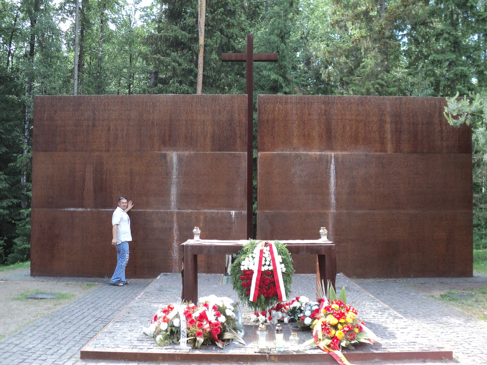 Вечерело, а у нас в планах было посещение мемориала "Катынь". Место тоже не радостное, но знаменитое, поэтому решено было ехать туда в надежде, что музей ещё не закрылся. Как говорится, надежда умирает последней...В музей опоздали и пошли гулять по мемориалу. Тишина...лес...птички поют...умиротворение...Посетителей, почти, не было. Говорят, что поляки приезжают часто, чтобы навестить своих умерших. Ужасает сколько народа погибло на войне, но ещё больший ужас наводит тот факт, что в мирные годы было истреблено так же немало...