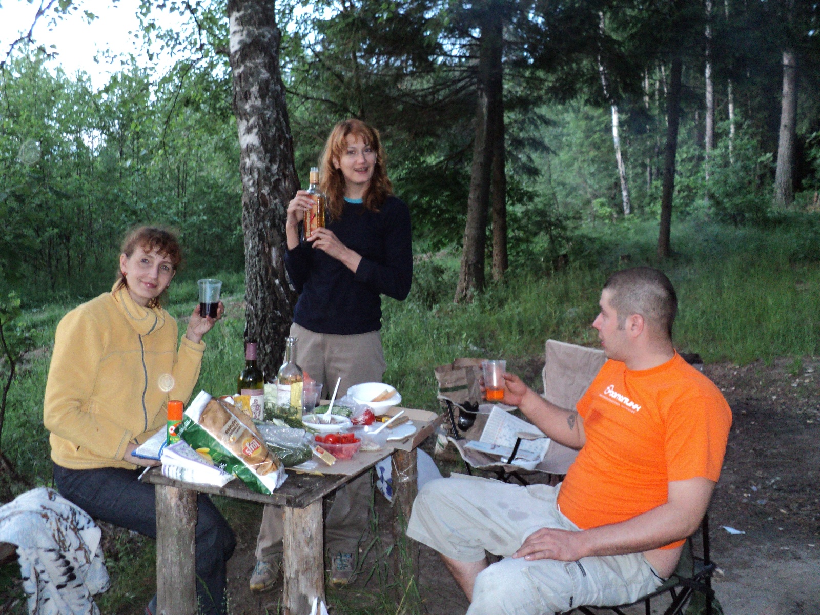 Разобрали палатки и стали разбирать сумки с продуктами. 2 пакета нашли, а третьего нет! Напрягали память, пытаясь восстановить события, чтобы понять, где ж умудрились посеять продуктов на 1000р….Правильная мысль пришла во все головы, практически, одновременно: «В МАГАЗИНЕ!!!» А в том пакете и шашлык (правда, не весь), и хлеб, и солёненькие огурчики…Радовало одно, что самое важное – всё осталось с нами. Расстраивались недолго. Кушать хотелось, потому принялись за приготовление ужина и отмечание…кто знакомства, кто встречи…