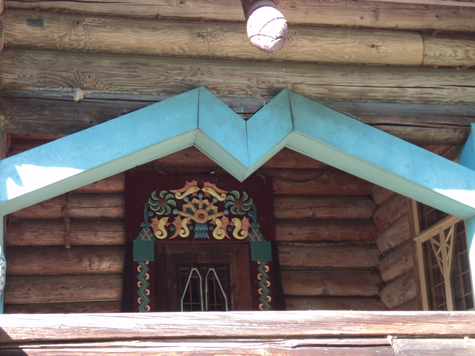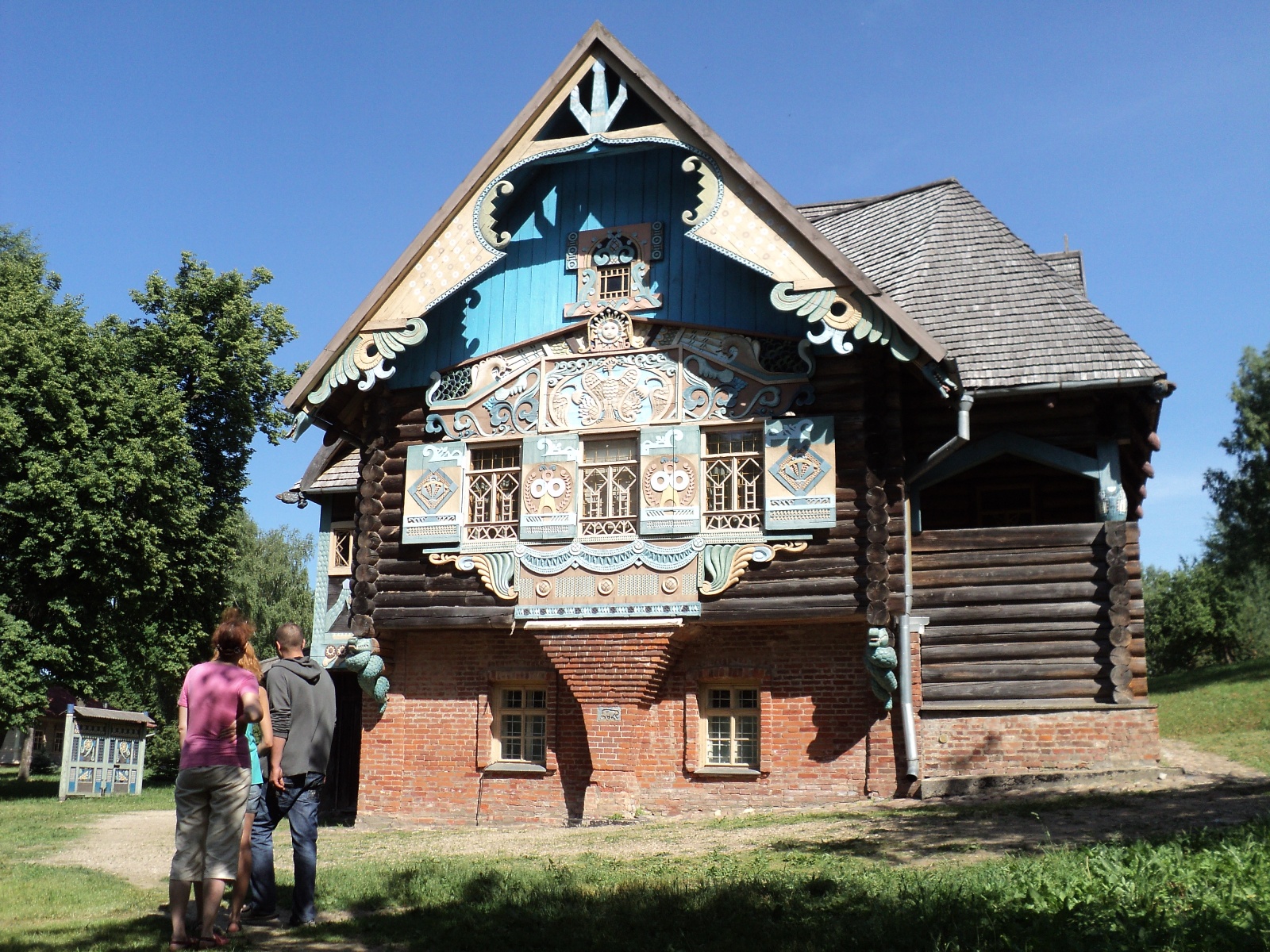 До Фленово доехали довольно быстро. Желающих посетить хутор было достаточно. Терем снаружи, действительно, интересный...резной с затейливыми узорами и головами, похожими толи на дракона, толи на крокодила...Постройка ветхая и небольшая, если сравнивать её, например, с домом зажиточного крестьянина в Кижах.