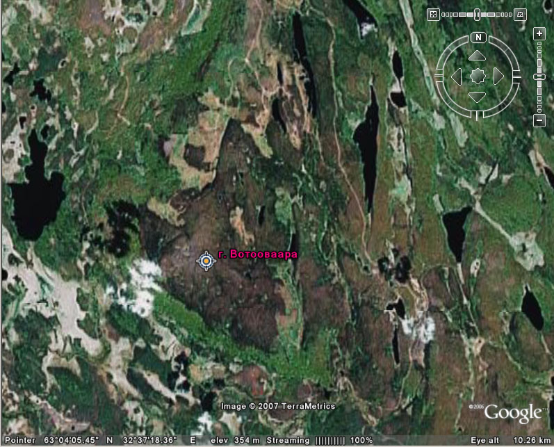 Расположение горы на снимке из Космоса (программа Google Earth, дальность 10,25 км)