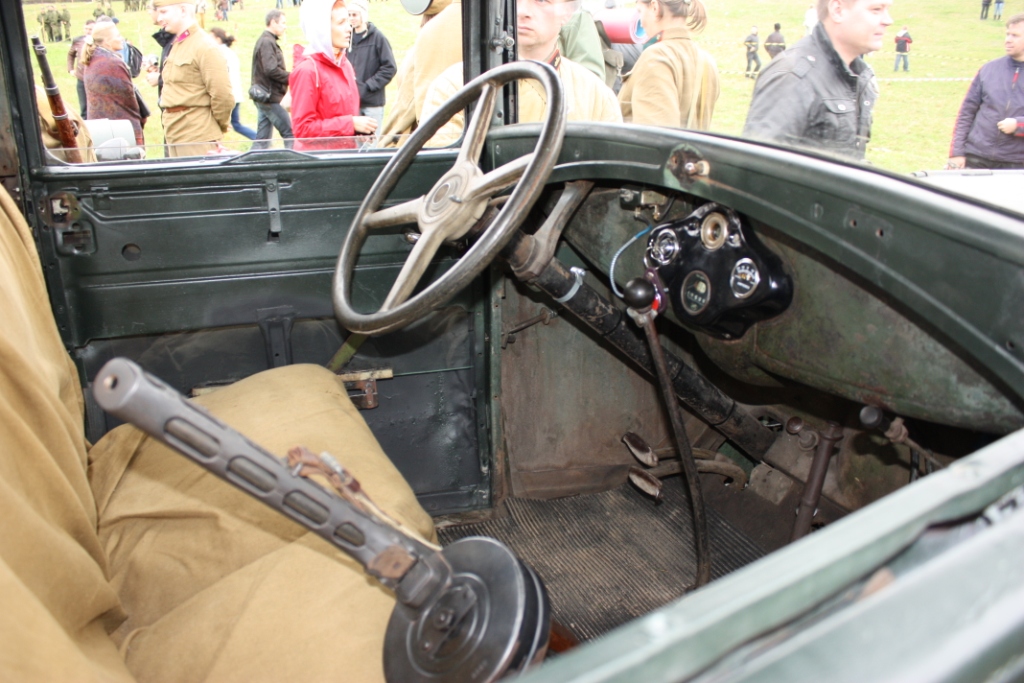 Под рукой теплый руль, а педали и ствол под ногами :) В кабине полуторки.