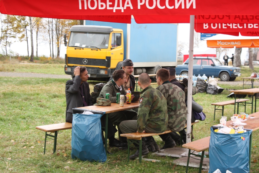 Всем здрасте!Во второе воскресения сентября меня с семьёй пригласили на праздник" День Бородино".Поехал туда в первый раз посмотреть на это представление.И так кратко об истории(шутка)в этом году 199 лет со дня бородинского сражения.И хотя дата не круглая было очень много народа как участников так и зрителей.отдельное спасибо оргам всё продумано до мелочей.И гайцы на подъездах(как нестрано вежливые)и парковки.ну и канечно омон, точнее много омона.зрителям предложили всё по полной.начиная с металло искателей и заканчивая шашлыками :occasion14: пловами и прочими явствами.приехали мы зарания разместились на полянке и начали отмечать сам праздник.само действо проходило на поле около импровизированных требун для простых граждан и около путевых седячих мест для вип :lol: гостей (к которым и нам удалось присщединица).началось всё в 14-00 и продолжалось около двух часов.ощущения не передоваемые.ну и конечно чуть фото[mailru]http://foto.mail.ru/mail/silver106/171/slideshow[/mailru] к стати во вторые выходные октября будет реконструкция уже ВОВ орги обешали даже танки.