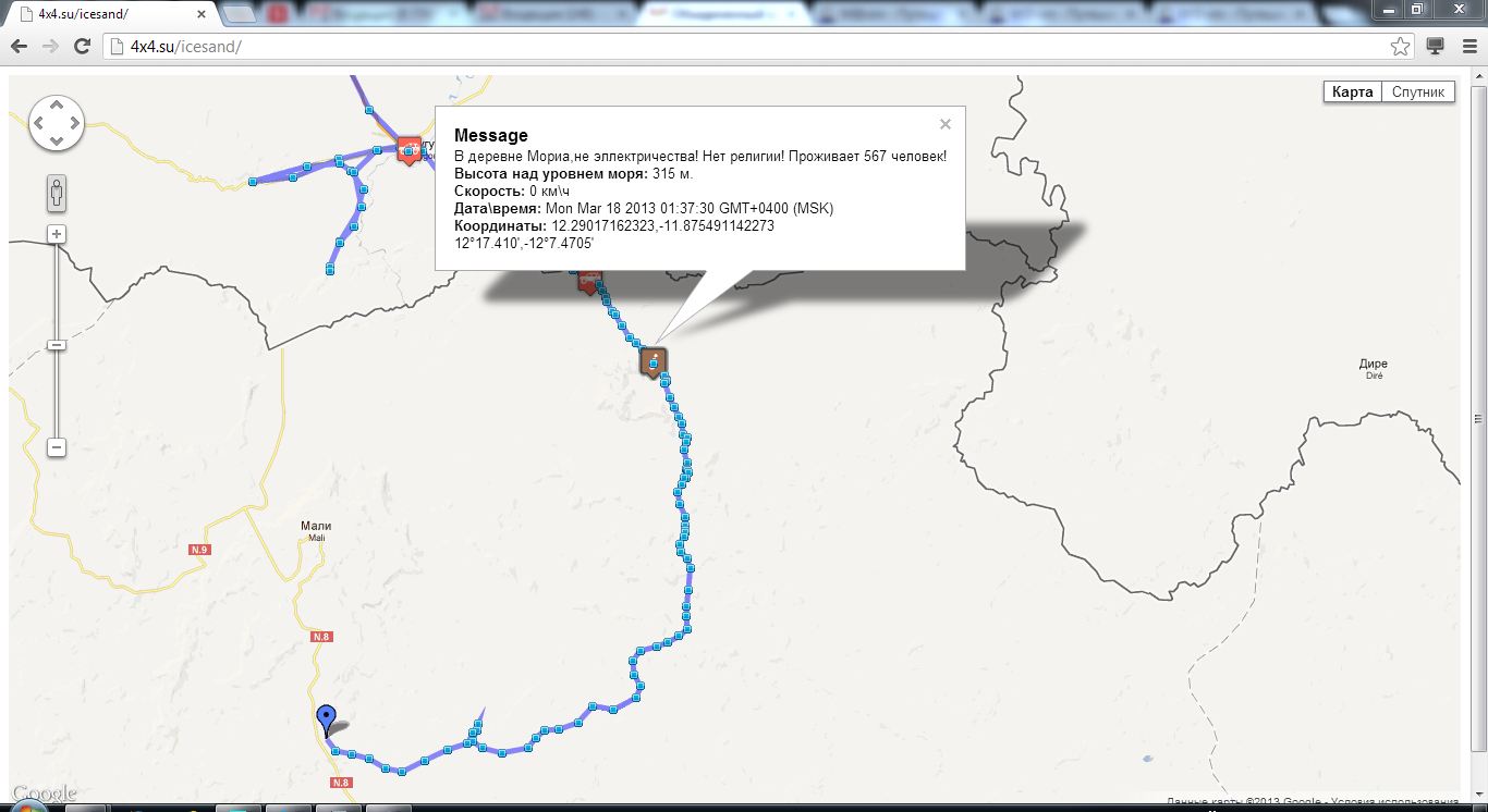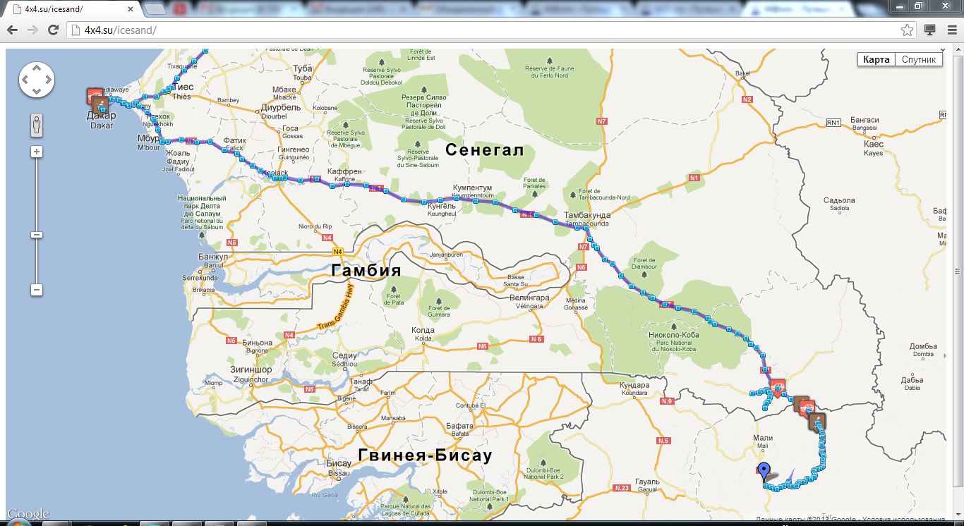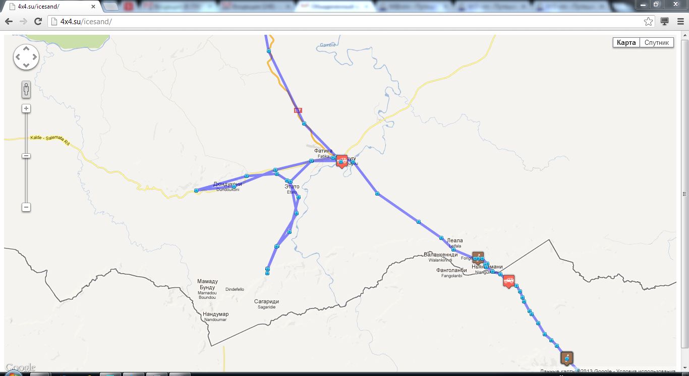 После в Гвинее дорог на карте нет, на спутнике кое-что просматривается, но скорость перемещения там у ребят была в среднем 10 км/ч