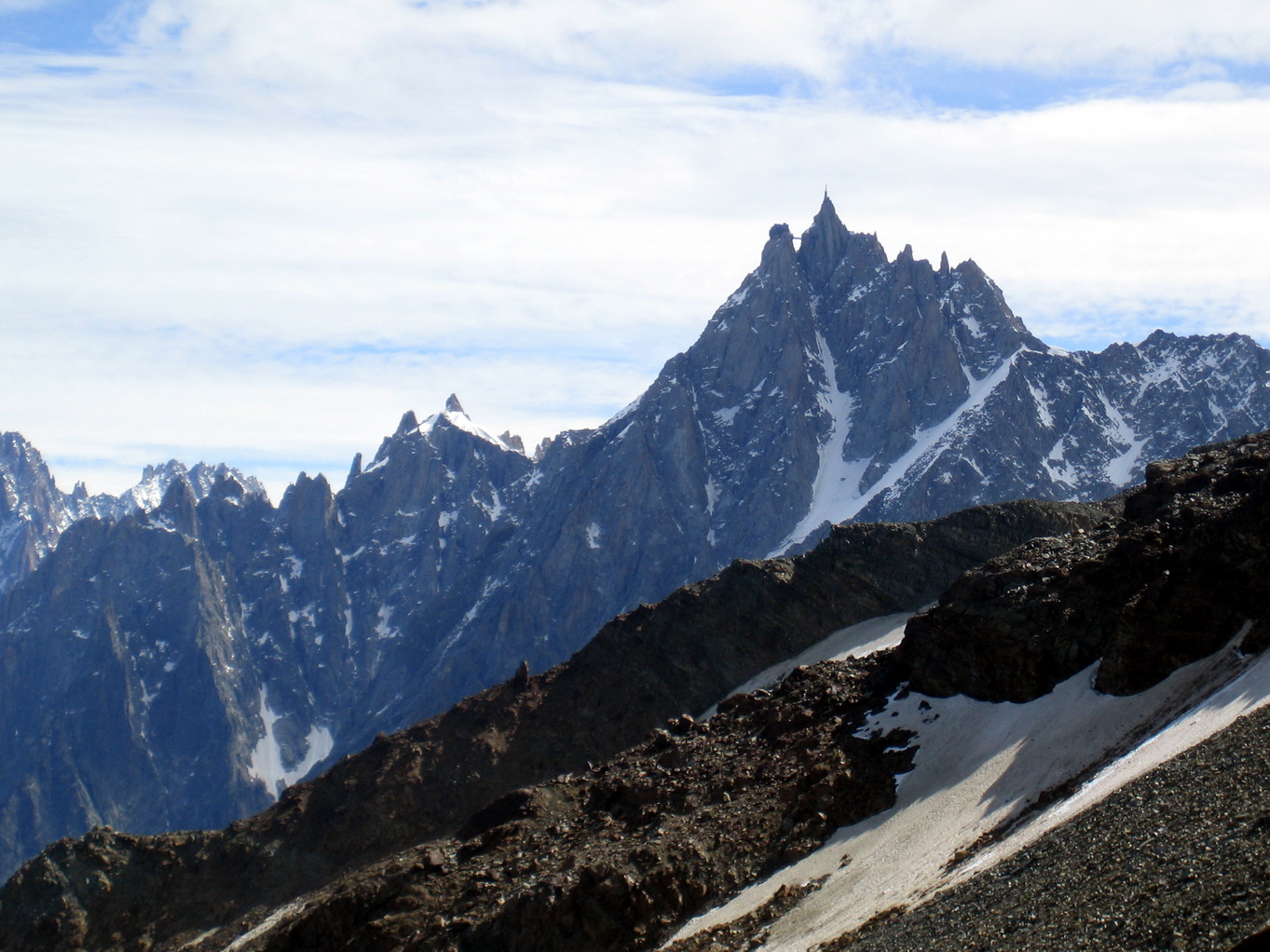На этой горе мы тренировали психику :) От самой высшей точки на этом снимке мы шли влево. Тропинка по гребню была шириной не более 50 см, далее склон крутизной градусов 60, потом все видно на снимке. Расходиться со встречными связками на этой тропинке довольно стремно :)