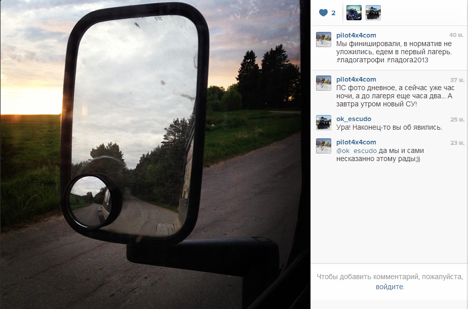 Иван, водитель технички Пилота для Эскудо СМС 25 мая 23:29 писал(а):Дима до сих пор в болоте. Робрим в 6 часов также не уложился.