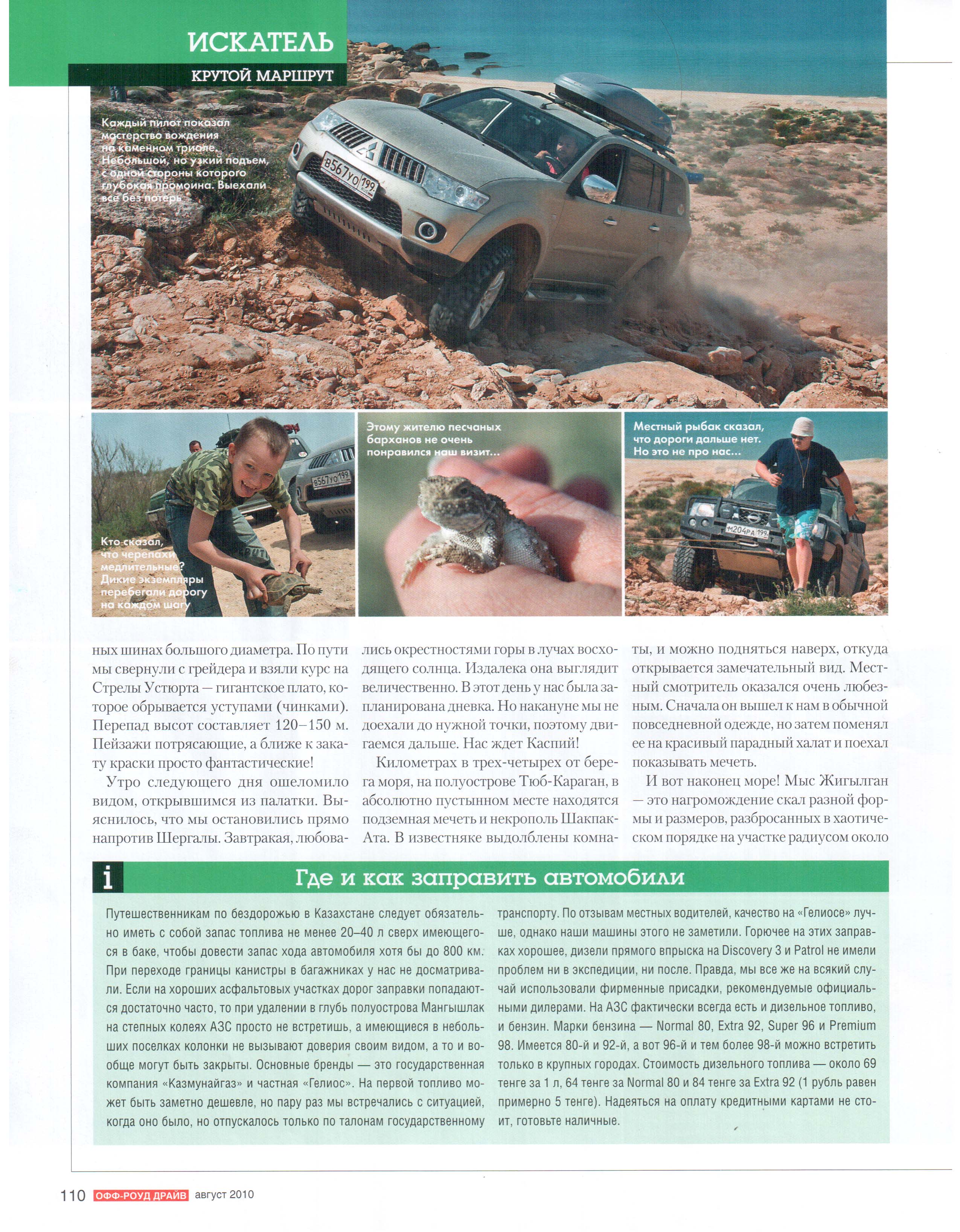 ...Хорошая дорога закончилась ровно после въезда в посёлок Бейнеу. В сам посёлок мы не поехали, ни к чему нам была туда, нам здесь надо на восток, на полуостров Мангышлак... Нас несколько настораживали курсирующие слухи про «злобность» местных жителей в Бейнеу и поэтому, не смотря на усталость, решили отъехать как можно подальше от посёлка и встать лагерем вне зоны видимости жилищ местных.Олег Кириченко писал(а):На самом деле, слухи эти про "злобность" местного населения западного Казахстана витают постоянно, и, скорее всего, имеют под собой основания. В этом смысле, я думаю, Мангышлак ничем не отличается от Горного Алтая или, тем паче, Тывы. А началось с того, что при переходе границы из России в Казахстан...