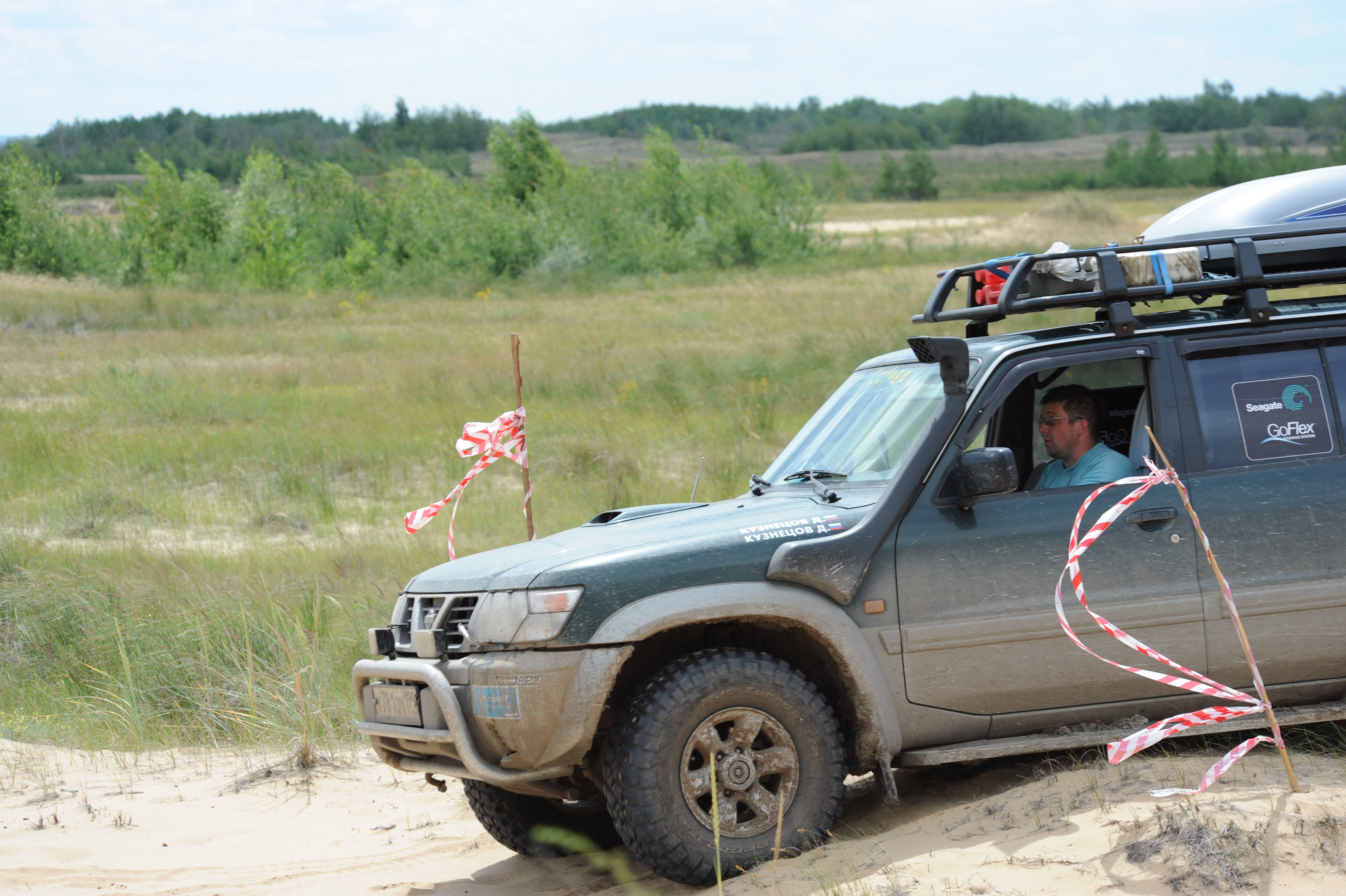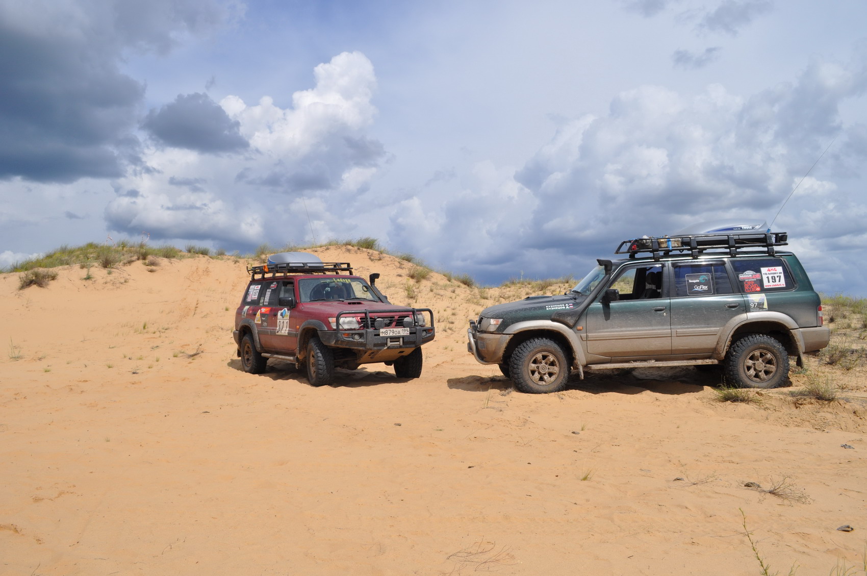 Гонка началась не в то время, как было задумано. Вообще, много чего в экспедиции происходило не по задумке. Таким образом, на старте скопилось несколько машин, готовых начать соревноваться, однако трасса была не готова…На песке не было видно, куда ехать. Вешки были сделаны из ивовых прутиков. И всё бы ничего, но ива росла повсюду! Отличить, где куст, а где вешка – нужно было постараться… В виду этого, организаторы разрешили прокатиться по трассе несколько кругов, чтобы участники понимали направление. Извилистость – не самое веселое. Самым интересным оказался спуск с одной из горок – если не успевал проконтролировать скорость въезда на неё, на спуске машина бампером втыкалась в землю. Далее следовала череда мелких пригорочков, напоминавшая стиральную доску…вот где испытание для ходовой…Машины «летали» по трассе, особенно, запомнился один Патриот и Прадик. Хозяева стремились на результат. Экипаж Патриота выиграл! К сожалению, не знаю о членах экипажа призёра ничего.