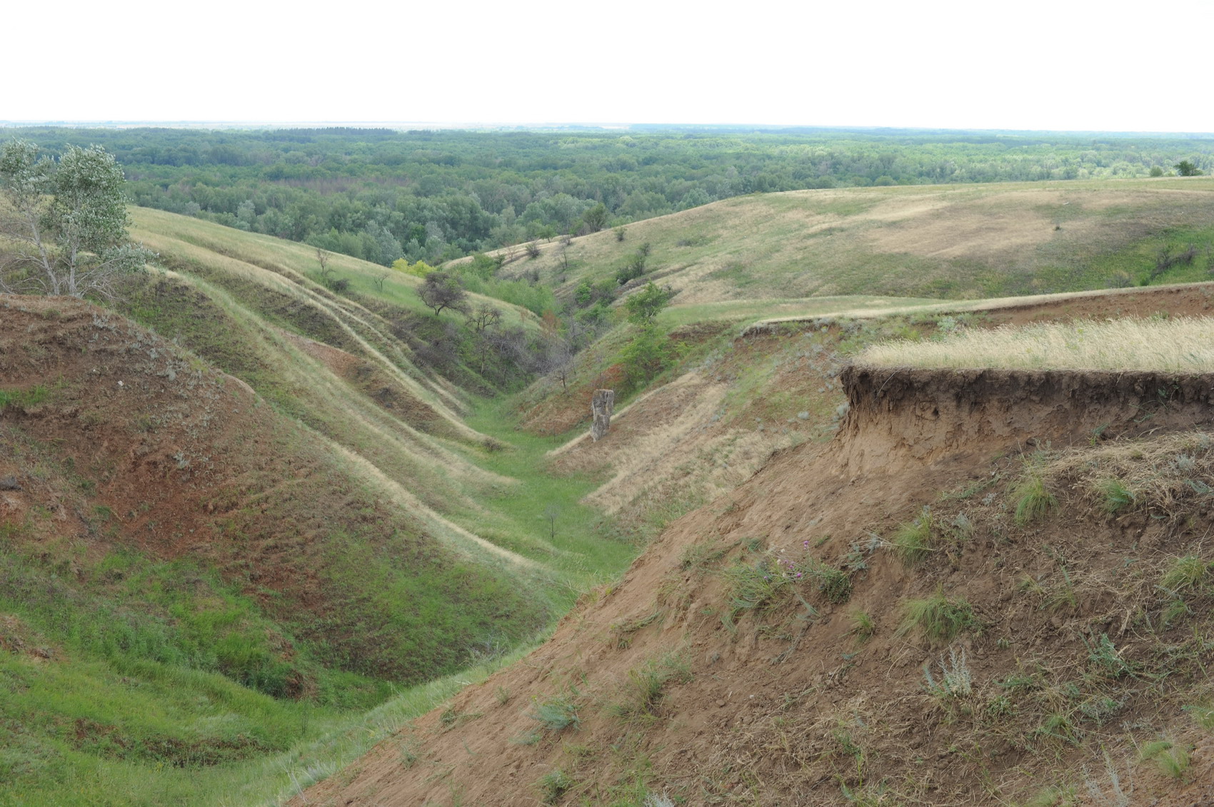 Дорожка проходила холмами с огромными промоинами. Иногда путь пролегал очень близко к обрывам. Не страшно, а восхитительно! Открывались красивые виды на изрезанные многочисленными промоинами холмы…в такие моменты понимаешь, какой силой обладает водный поток…