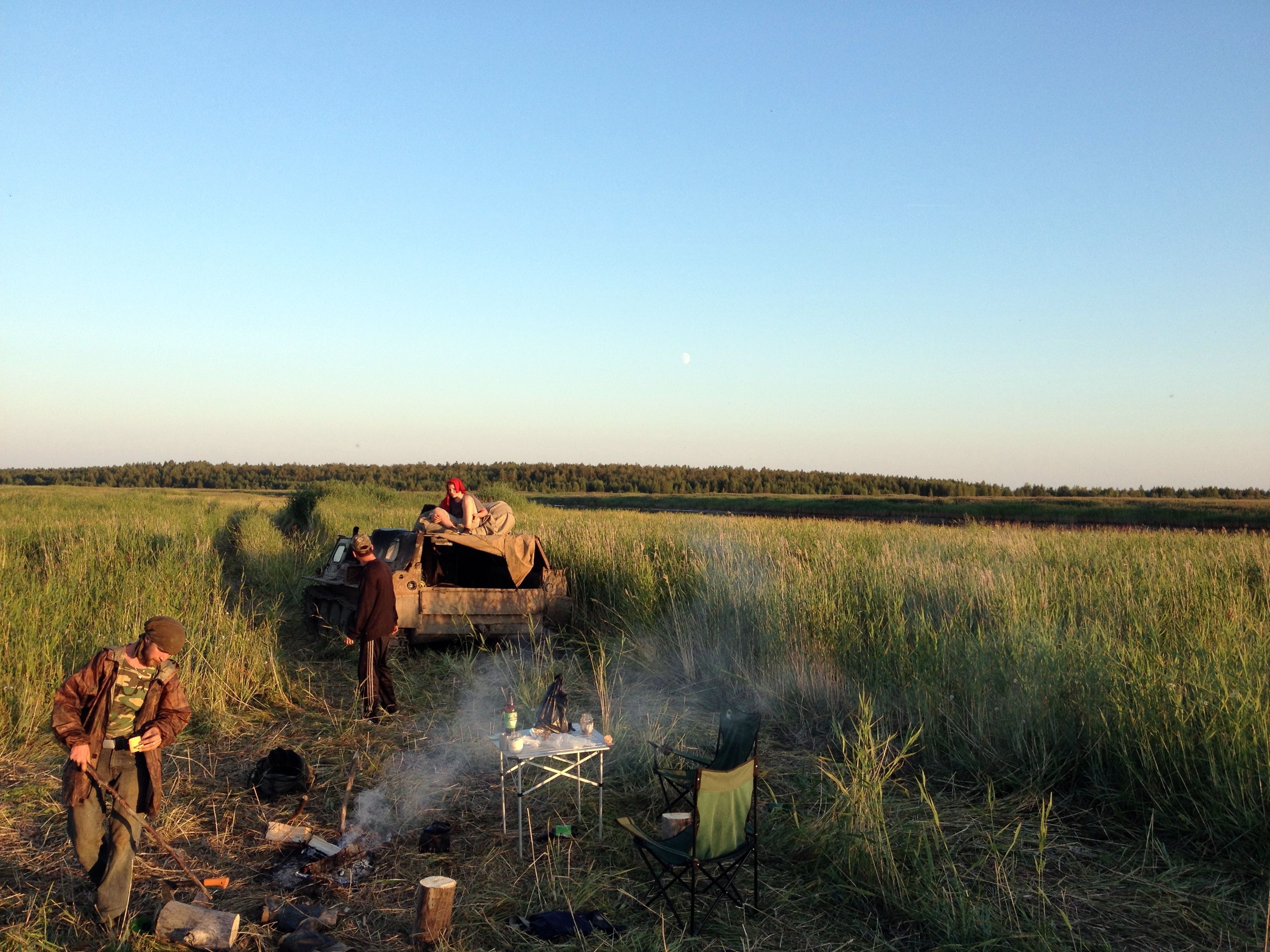 3. Пешком вечером вышли в Ворзогоры, СПАСИБО доброму человеку - накормили, напоили, свели с человеком, у которого есть ГАЗ-71. Михаил же и подбросил обратно до болота. Забрали спальники и по темноте вышли к рыбацкой избушке. В утренний отлив приехали ребята на гусянке и забрали нас. Дошли до машины. Залебедились за гусянку, вылезли и пошли дальше сами до няши.