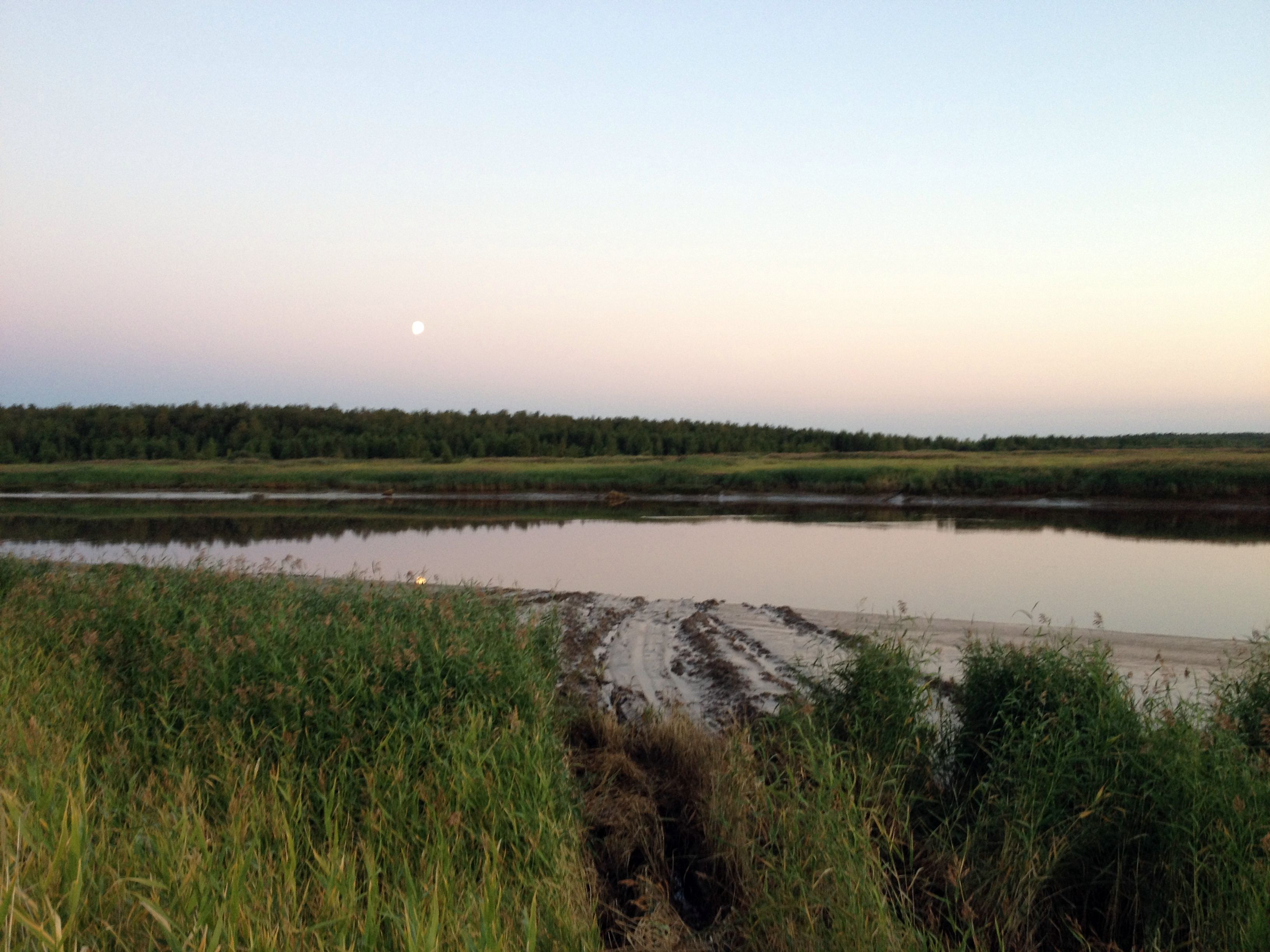 5. В 00-00 пришелся пик отлива, зашли в няшу и тут же сели. Гусянка нас выдернула и мы встали на твердое дно. Вышли из реки сами, трос был прицеплен для страховки, но ухитрились намотать его на передний мост, вырвали тормозную трубку - это оказалось нашей единственной поломкой за все путешествие.