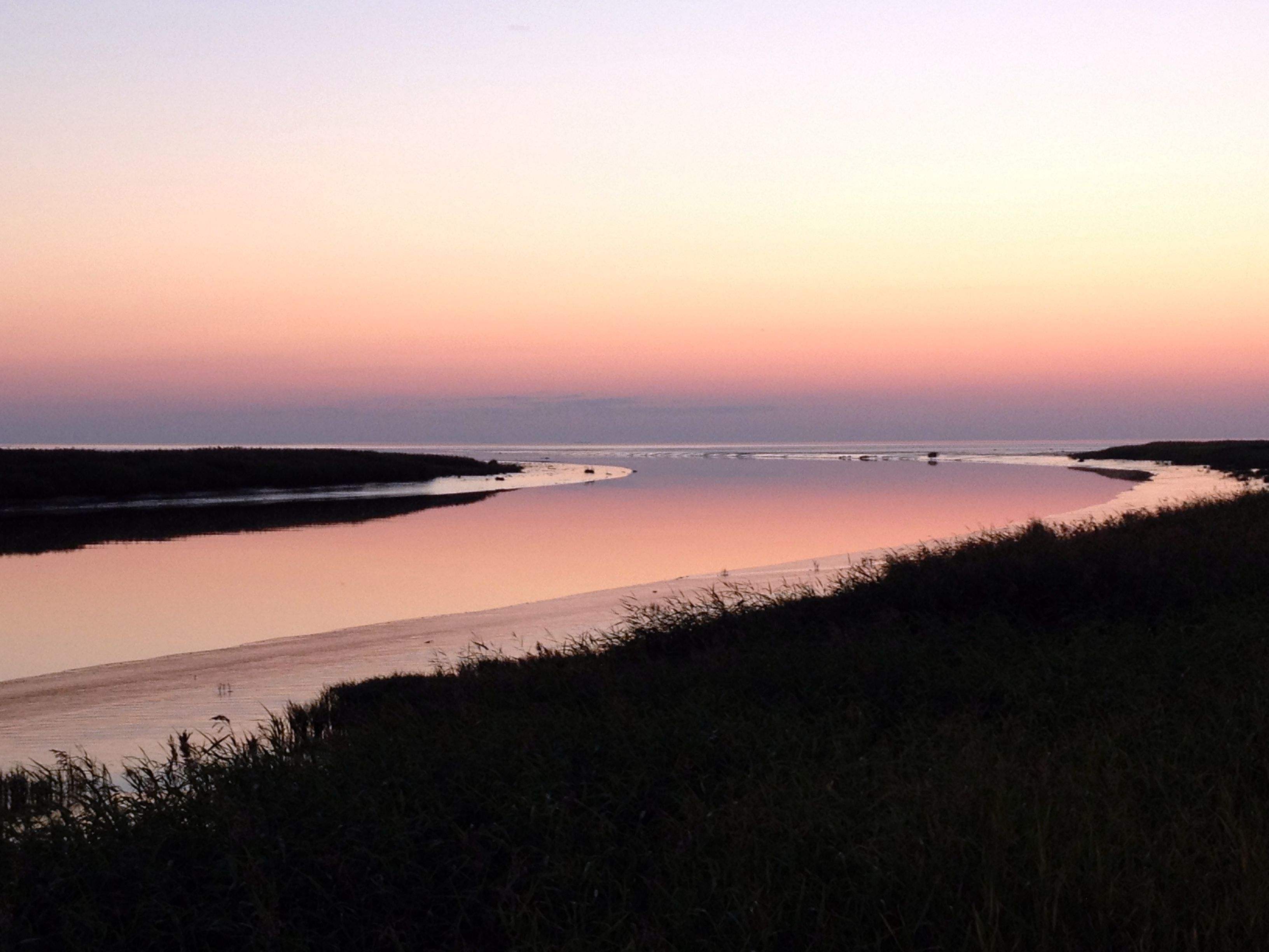 4. Сами прошли няшу, форсировали по низкой воде Тапшеньгу. Обратно зашли в тростник и стали ждать вечернего отлива. Пройти Нименьгу можно ТОЛЬКО в отлив - в пик отлива глубина - около 1 метра. В пик прилива - ТРИ метра.