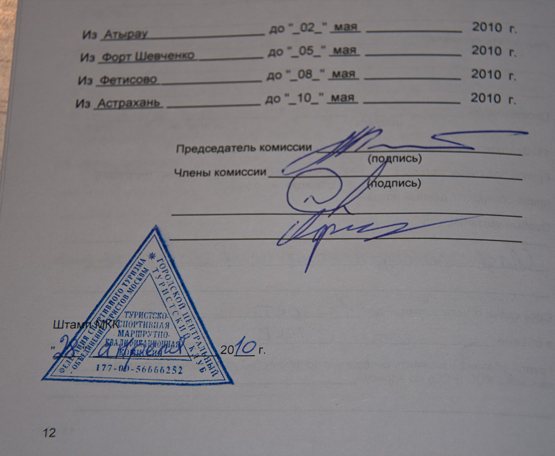 Итак, уважаемые экспедиционеры, сегодня я сдал маршрутную книжку в городском турклубе и получил на ней номер, подписи и большую синюю треугольную печать.