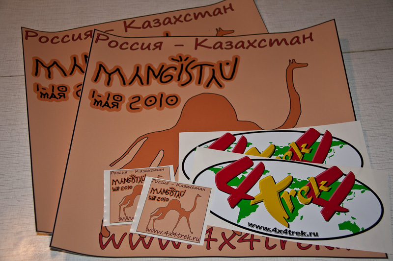 Да, а вчера забрал из типографии наклейки экспедиции. Каждому экипажу на автомобиль выдается вот такой комплект: