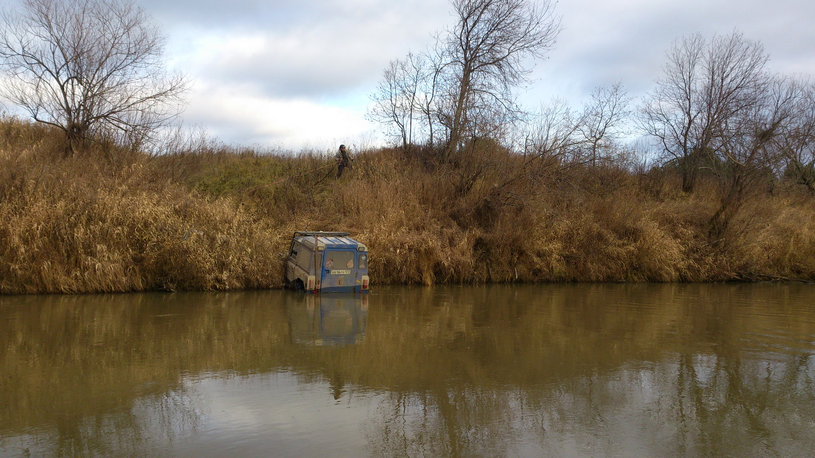 Выход из первого брода. Лебедиться не за что. Первому экипажу пригодился якорь КОТа.