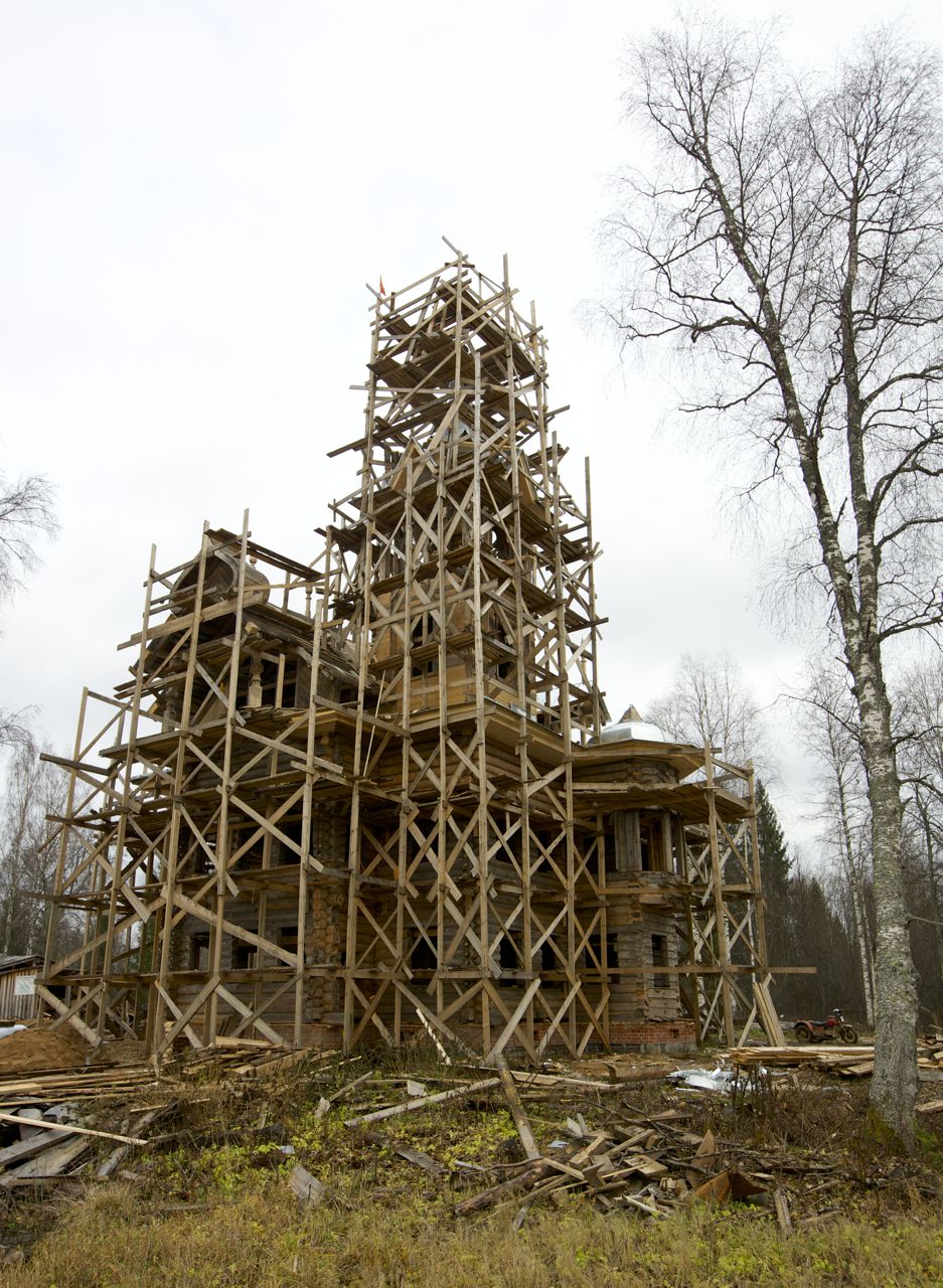 На третьтий день, соответственно, пошли на маршрут мы с Пашей. Третий день походил на первый, правда на просеке Паша намотал из земли трос, любезно забытый коллегами-сетевиками. Тоже попадались церкви, день традиционно закончился лесовозными колеями.