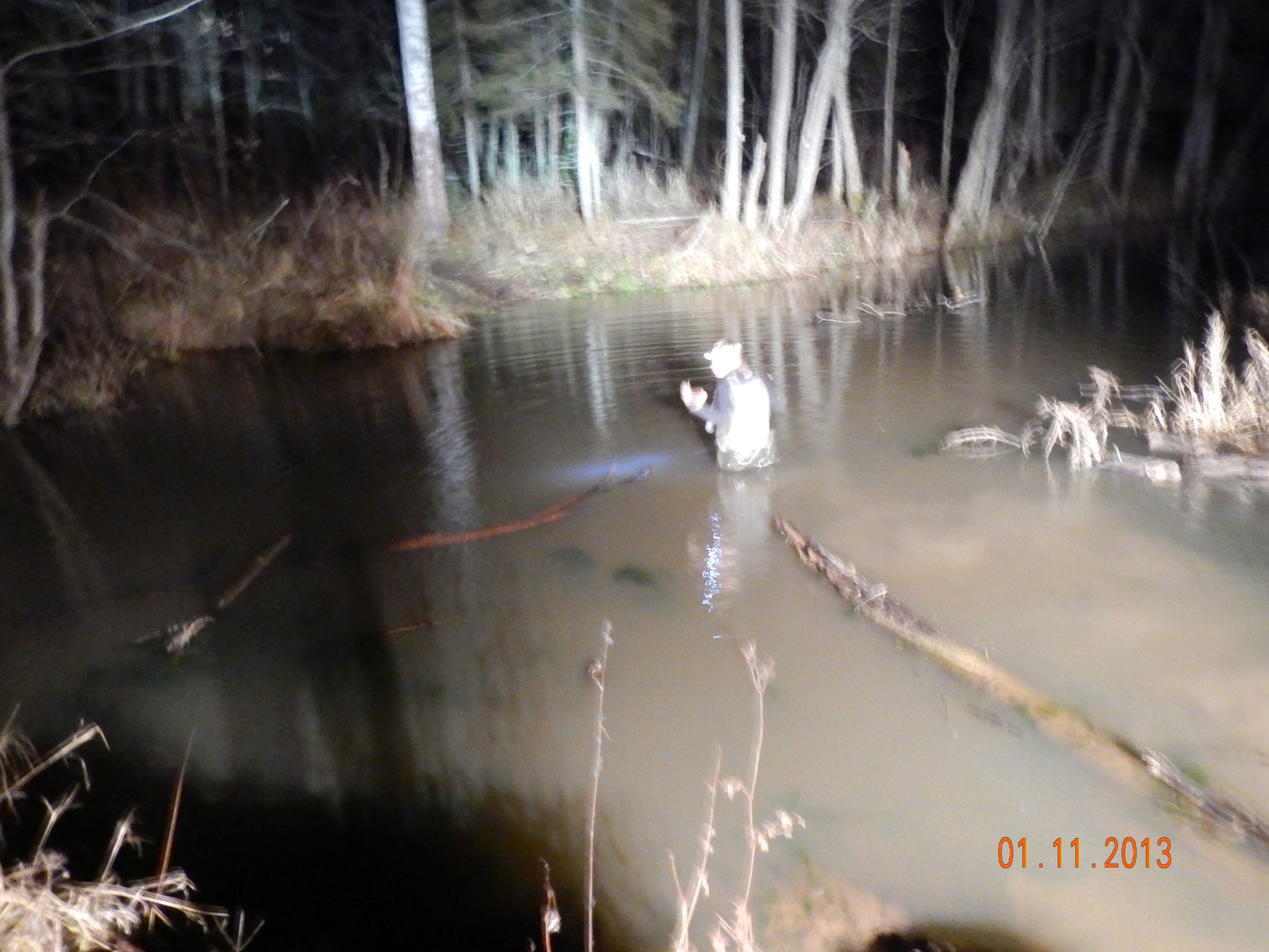 Брод через Нею в Пасьму. Бычок прощупывает глубину - Соусу для этого было достаточно выхода в атсрал.