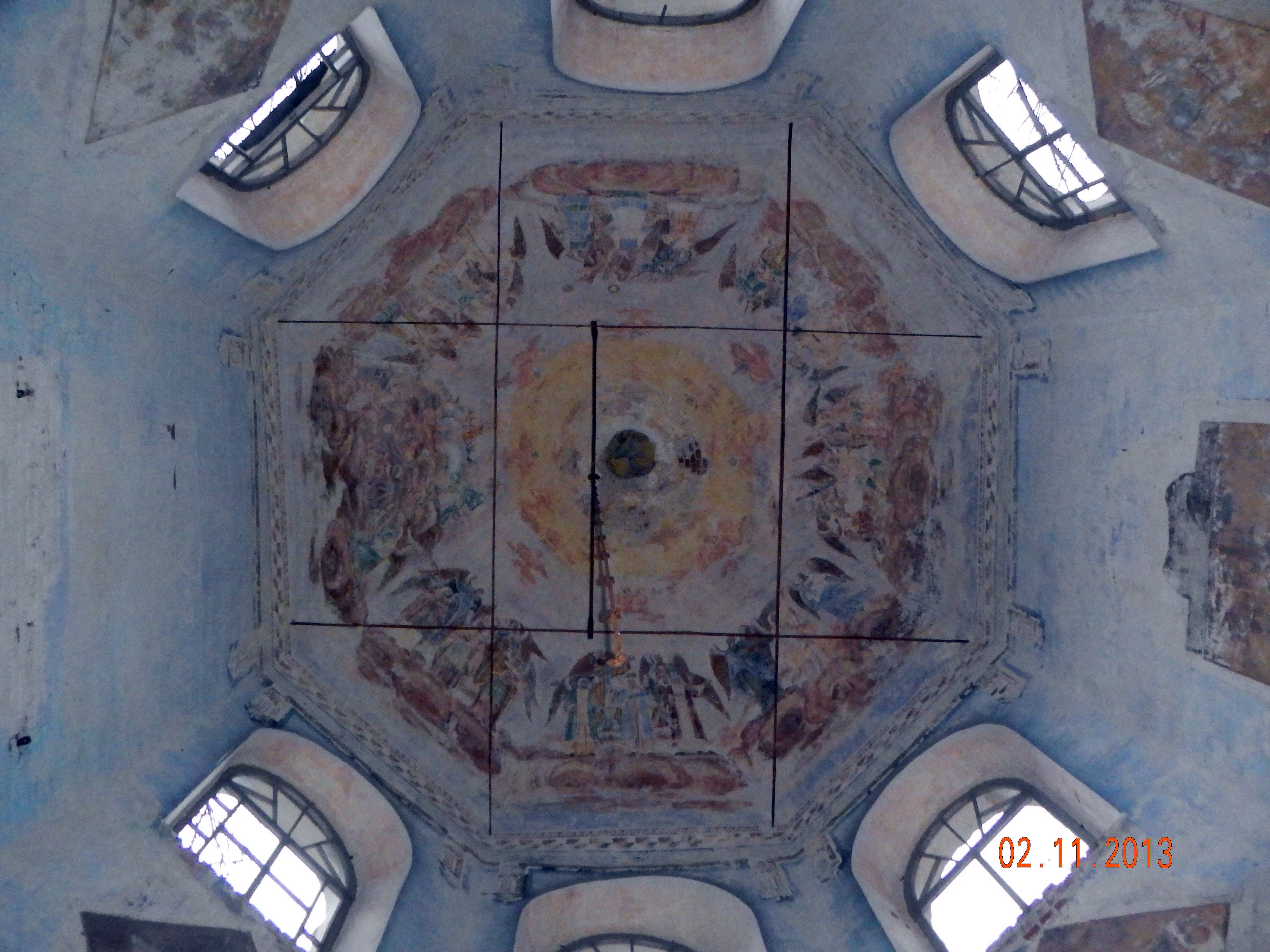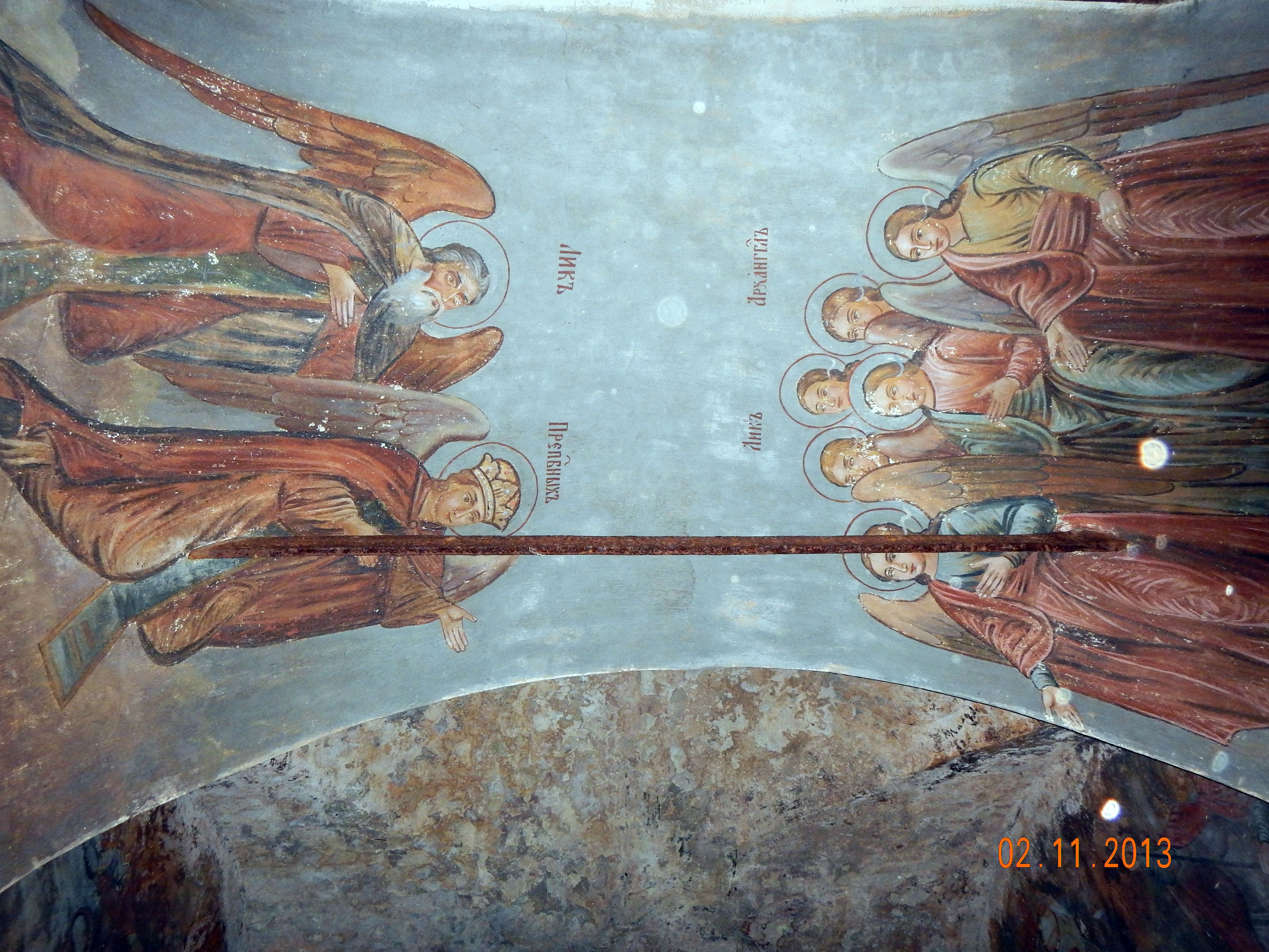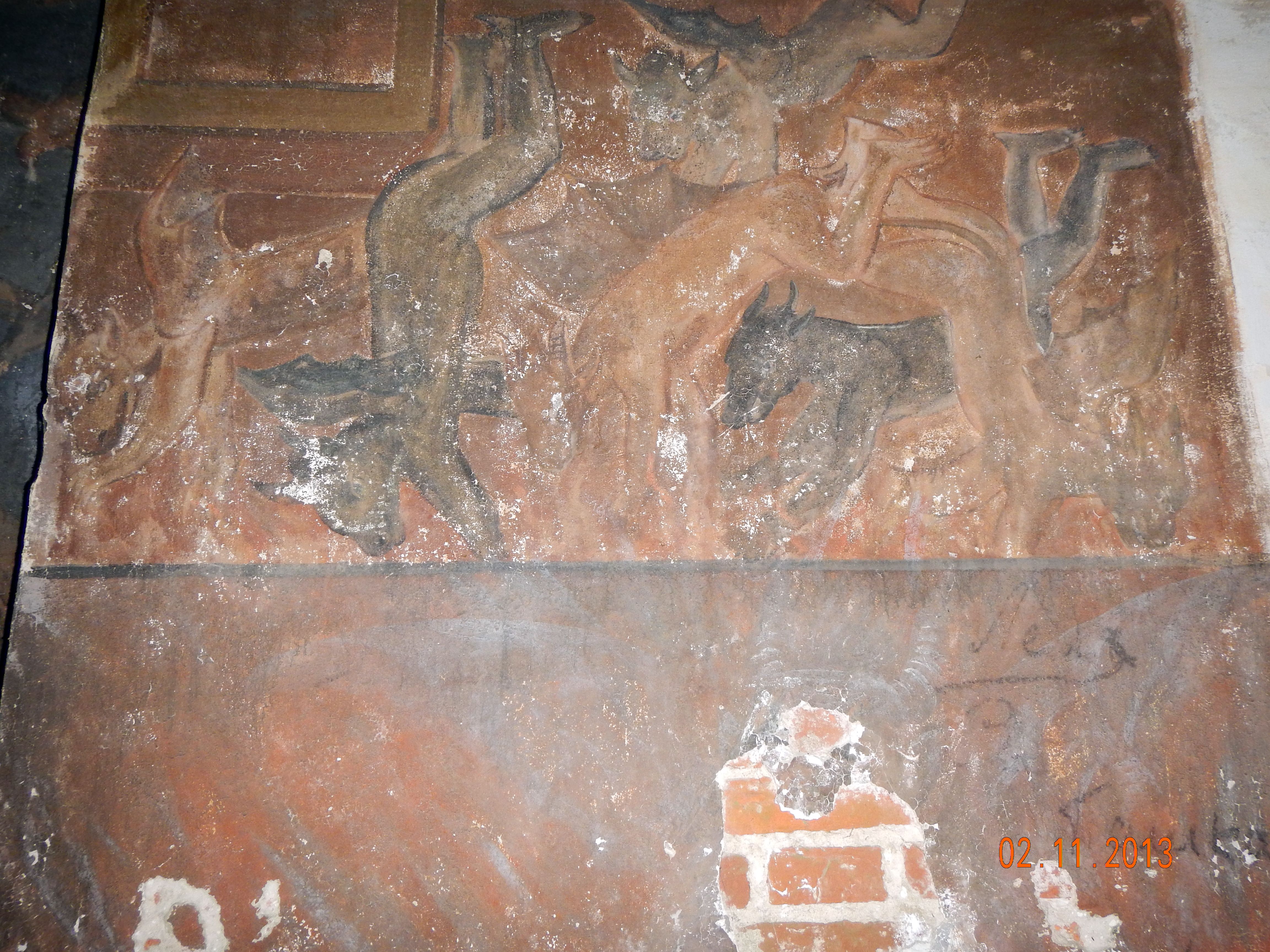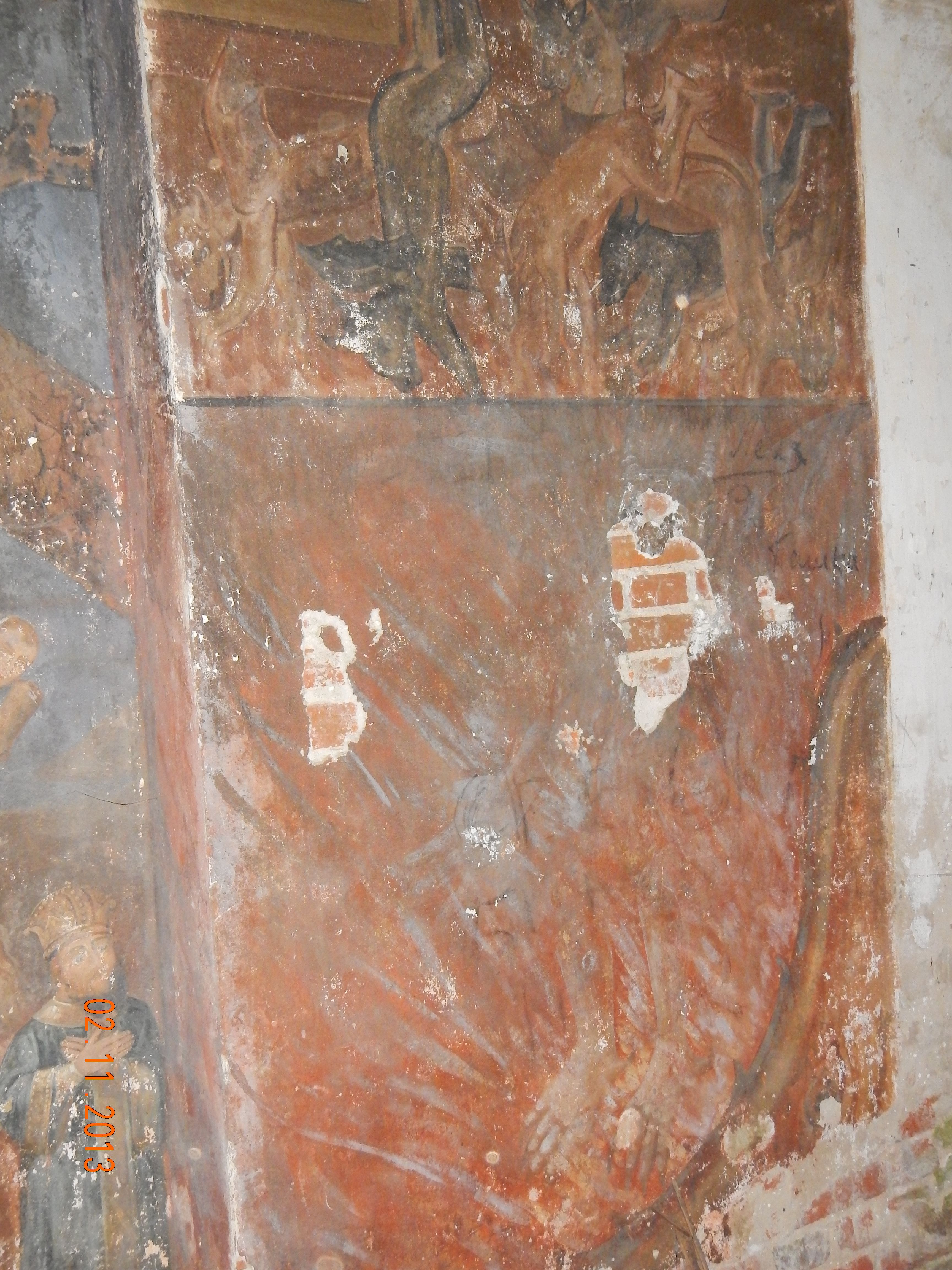 Практически уничтоженная фреска на наружной стене левой церкви.