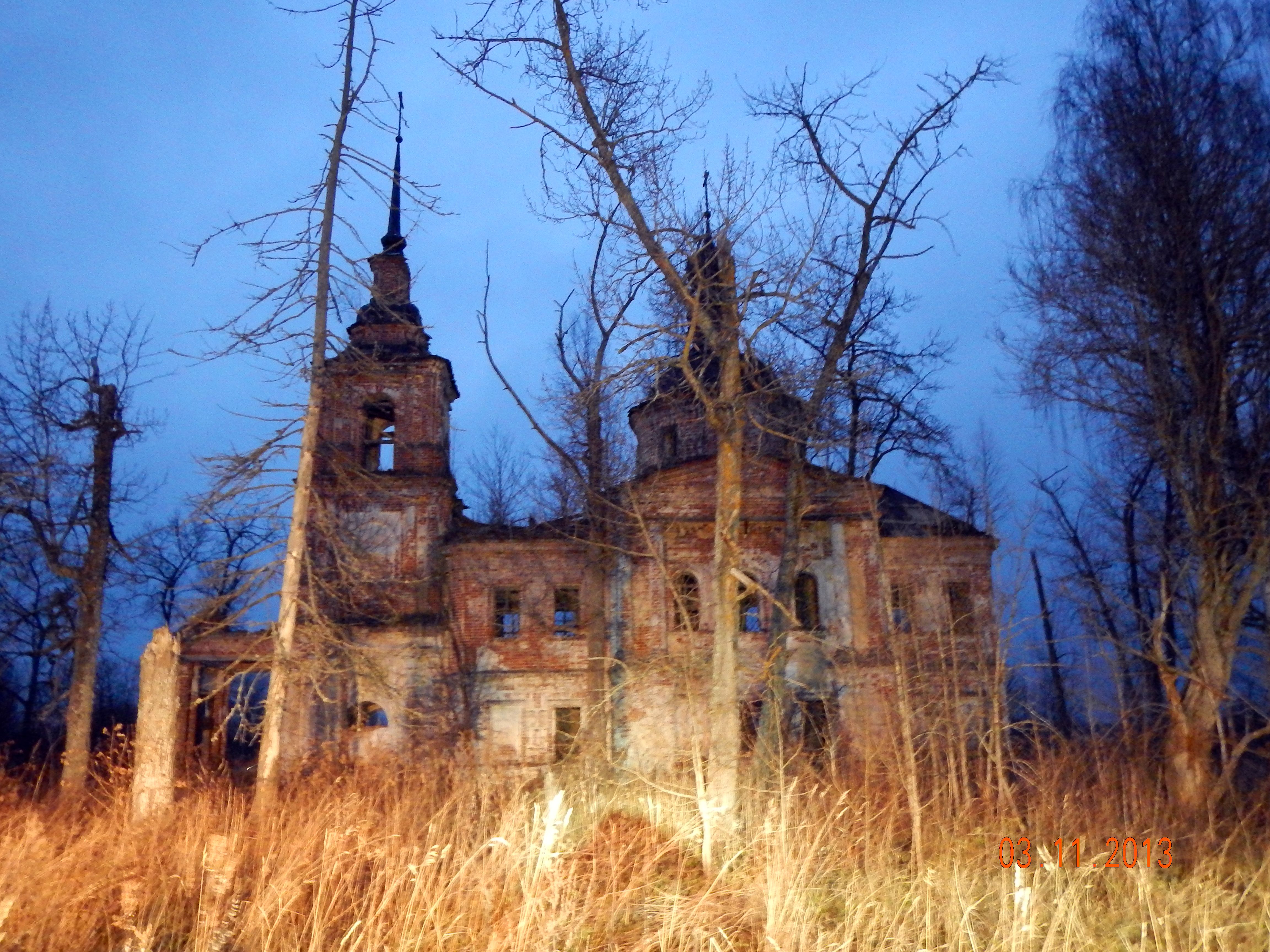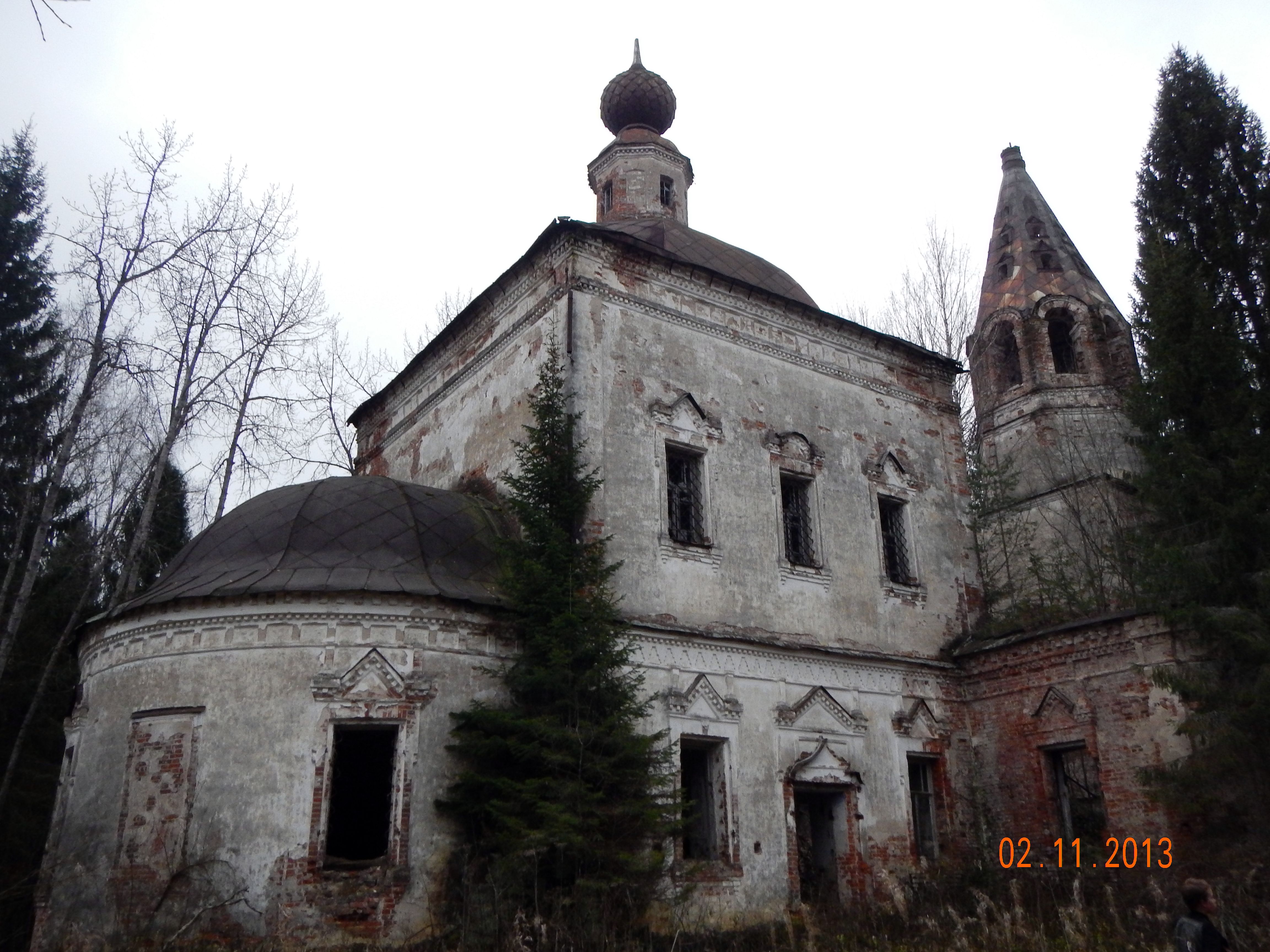 На второй день мы пошли вдвоем - я и Леша, Паша поехал во второй лагерь. Накатались неплохо, все искали одну дорожку, да так толком и не нашли. На одной развилке ушли вправо и заехали в урожище Ведение-Каликино, где побывали в очень красивых церквях. Урочище оказалось тупиковым - брод через речку Идол (!!!) не нашли, хотя где-то он был. Вернулись обратно к развилке и ушли с нее налево, где брод отоыскался через 50 м. Остаток дороги оказался до боли знакомыми лесовозными колеями, на выходе из которых Сантана поломал коробку. Кое-как выехали на асфальт и пошли в лагерь.