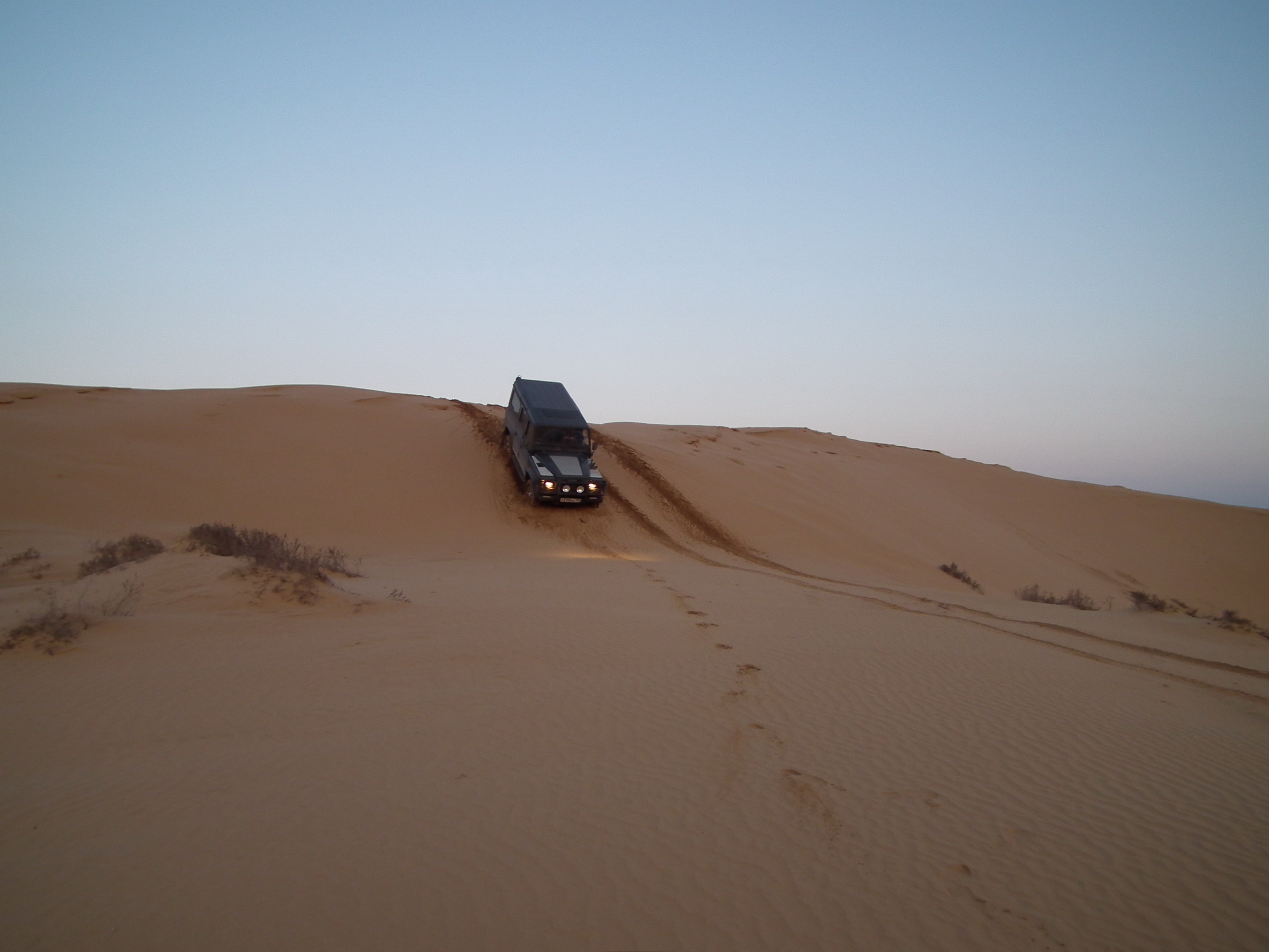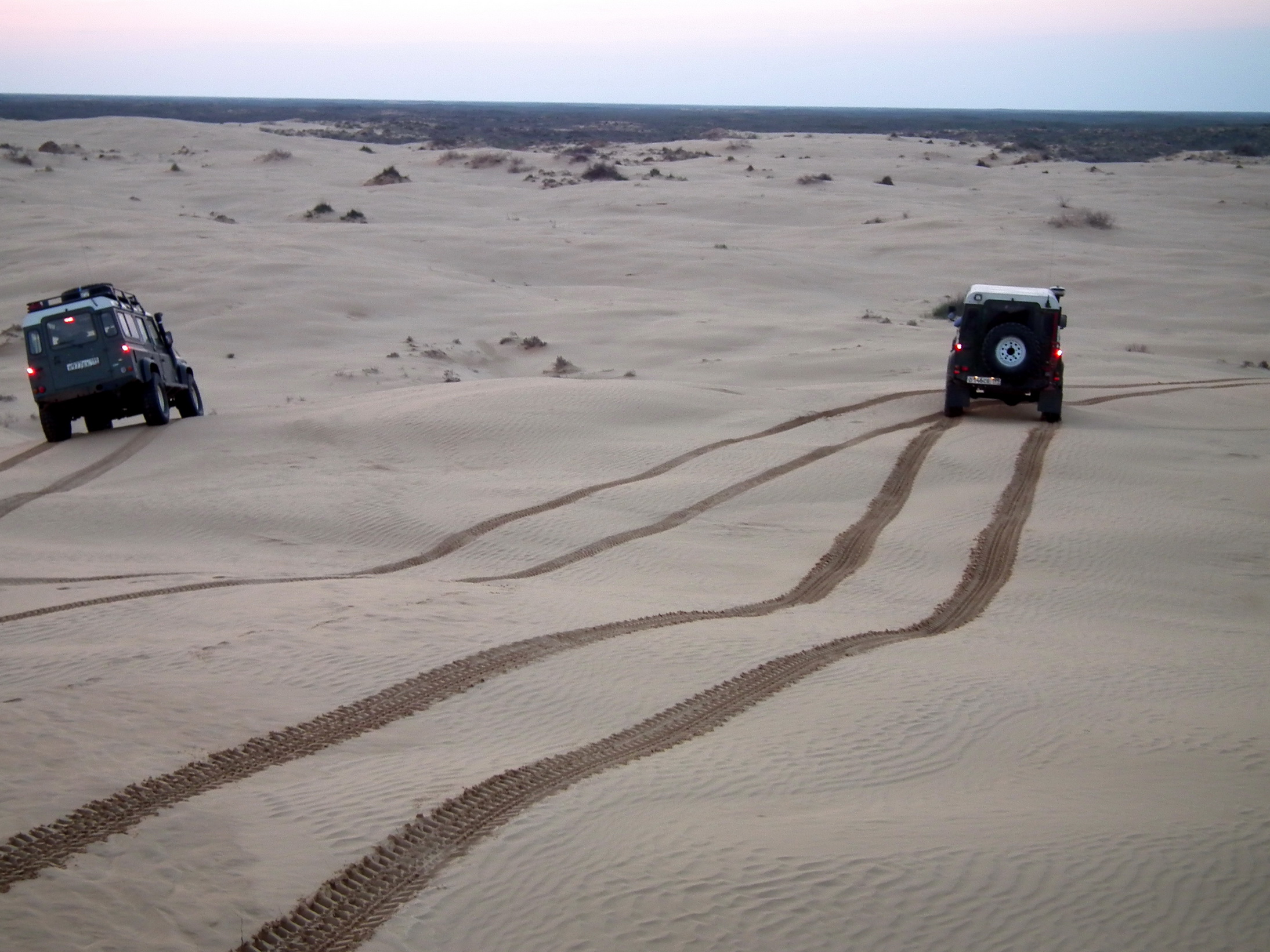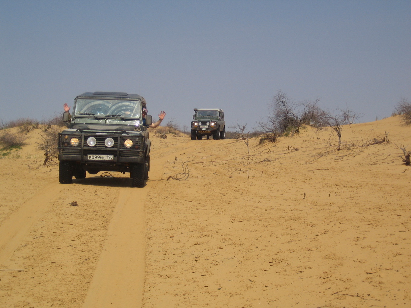 1. фантастический участок в плане внедорожной езды: Смушковое - барханы - Астрахань. Представляет собой десятки километров вообще без дорог (движение по азимуту) по достаточно сильно пересеченной местности. В целом проезжабельно для любого внедорожника хоть с какими-нибудь блокировками. После одного дня даже полный чайник становится экспертом по преодолению спусков/подъемов/уклонов. Барханы красивые, размером с 3-х этажный дом. Координаты: бархан1 N46 25.777 E47 29.777, бархан2 N46 29.759 E47 47.070 Переезд через ж/д дорогу недалеко от второго бархана примерно в точке N46 27.544 E47 56.313. На этот участок надо два дня.