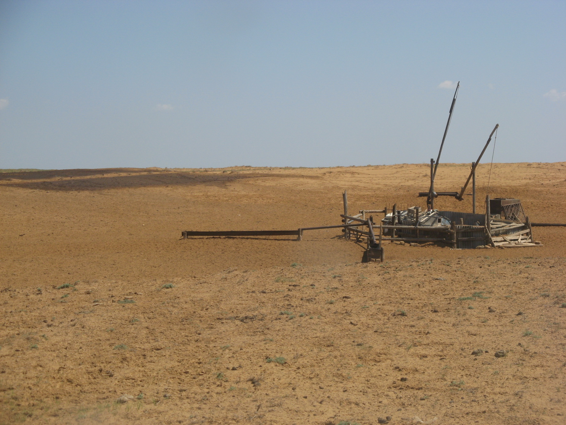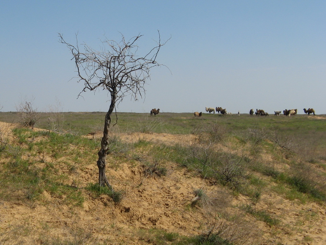 5. В целом маршрут вдоль казахстанской границы менее интересный, чем п.1. Там мы встретили еще несколько песчаных барханов (один в точке N47 13.012 E48 05.636). В районе нп.Кордон (N47 24.202 E47 50.616) в пустыне выращивают экспериментальные сады. Еще со времен советского союза проводится исследование с целью вырастить в пустынях леса