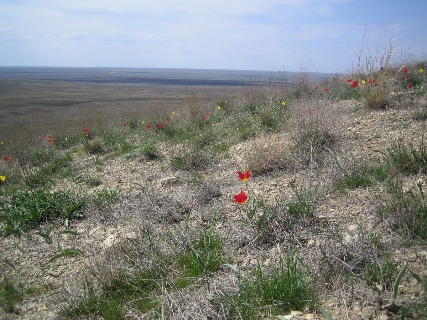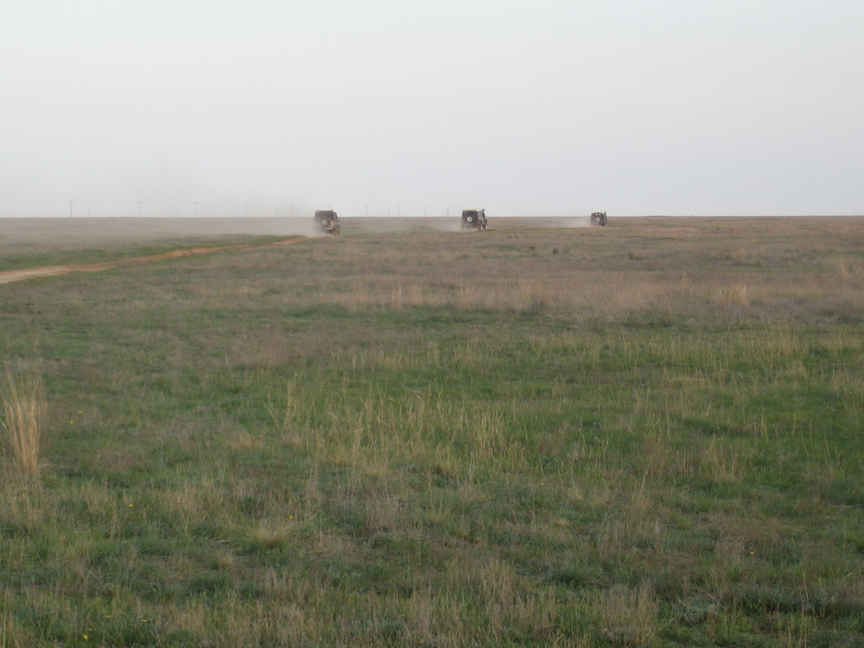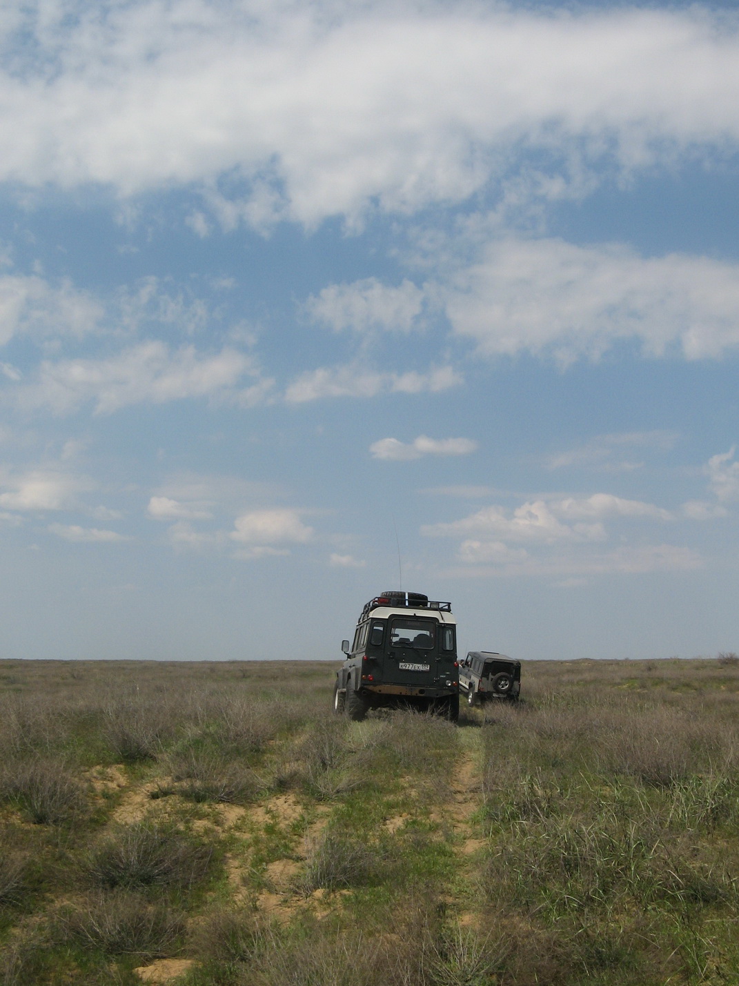 2. По степи от Волгограда такое расстояние, как мы проехали (несколько сотен километров), преодолевать смысла нет. Пыльно и неинтересно. В степи очень красиво цветут тюльпаны (обычно в середине или второй половине апреля). В самом начале апреля степь может быть размокшая (мы видели колеи от военных грузовиков - впечатляет).