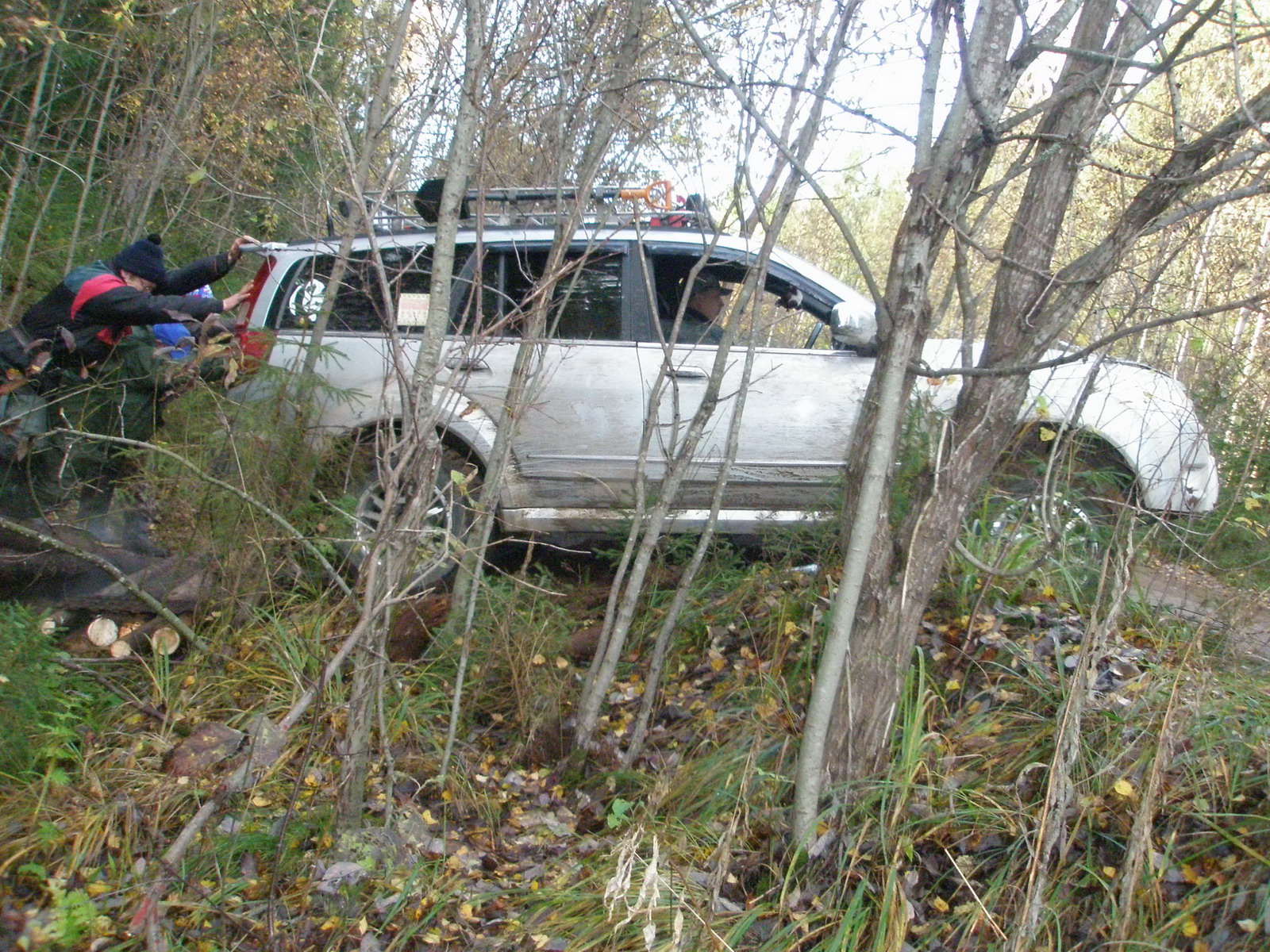 Первая пара точек сдалась с боем…чуток помяли бампер…Оказалось, что штурмовали мы их на заднем приводе :wink: . В голове промелькнула мысль о том, что это уже не впервой. :mrgreen: