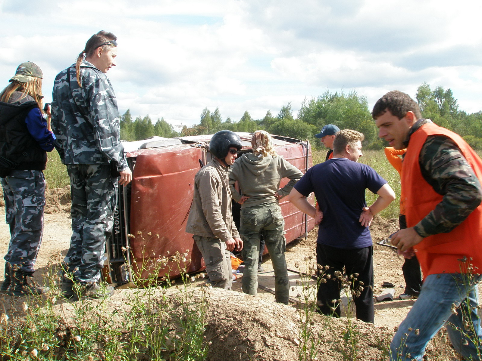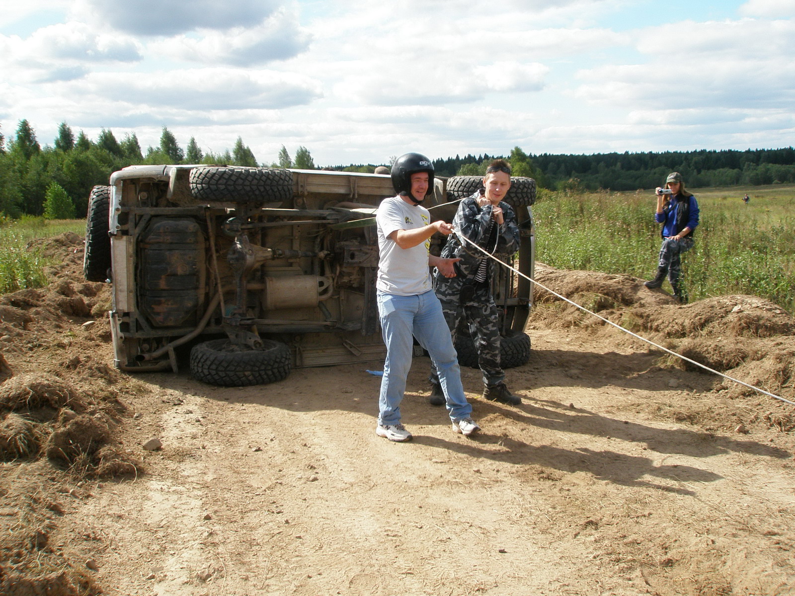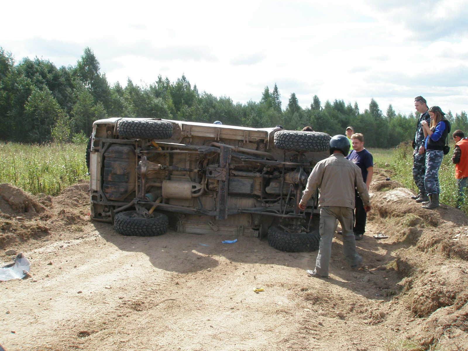 Выехав из очередного перелеска, мы увидели молодого человека, блуждающего в потьмах с фонарём в руках. Оказалось ,что народ нашёл место, где засесть! Некий экипаж так заориентировался, что уехал не туда, куда нужно и там благополучно застрял. На помощь к нему подоспел экипаж УАЗика, который в процессе проведения спасательной операции сжёг сцепление! Именно из этого экипажа был молодой человек с фонарём. Он ожидал помощи от ОРГов.