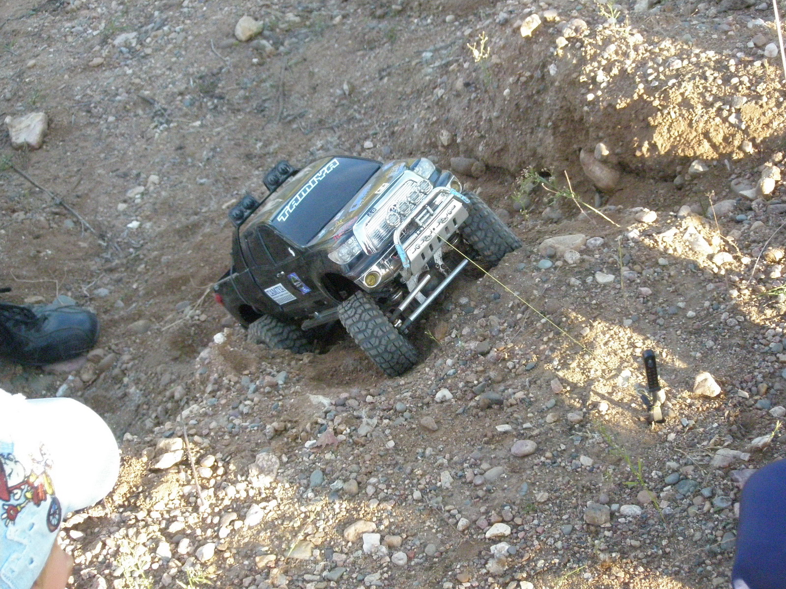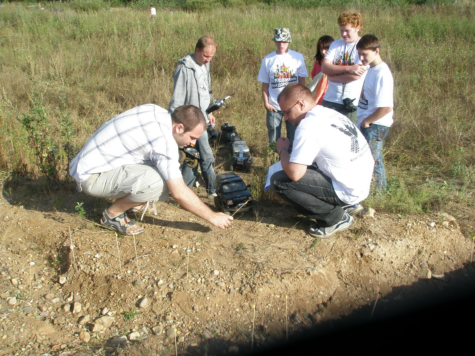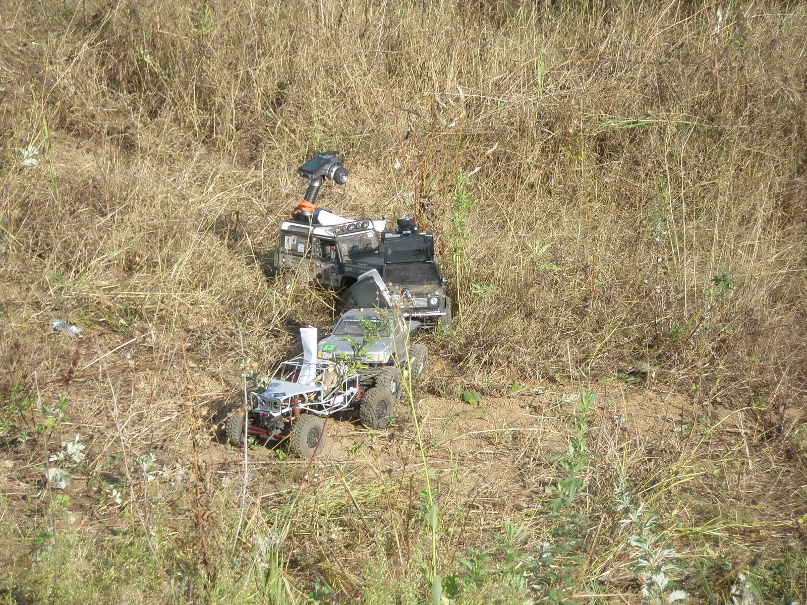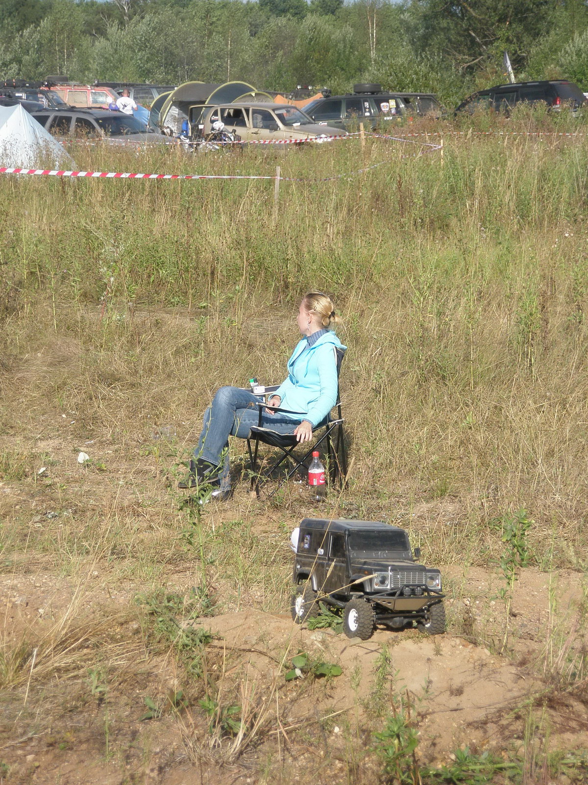 Параллельно с овощной экспедицией на мини-трассе проходили соревнования радиоуправляемых моделей внедорожников и авторских экземпляров. Удивительная трасса, созданная на основе промоин в доль дороги замечательно подходила для того, чтобы любители могли почувствовать себя джипером. :lol: Всё по-взрослому! И спуски, и подъёмы, прохождение ворот (желательно без касания), а некоторым даже приходилось лебедиться!