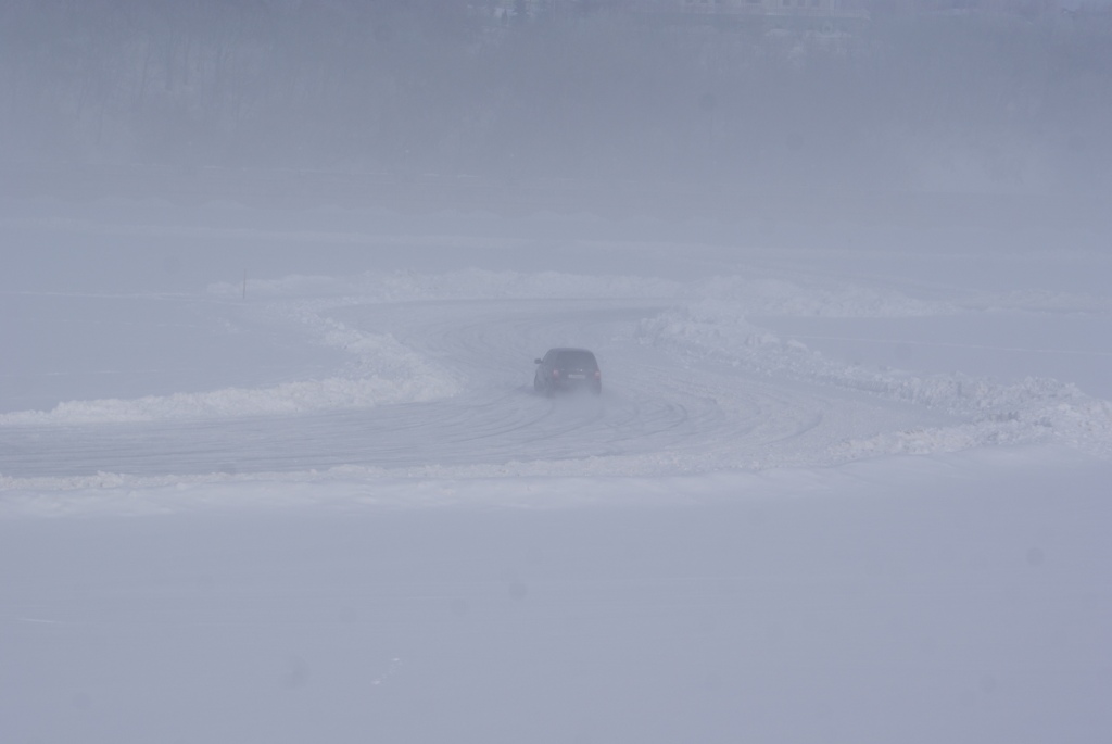 Но енто ешо не все! В Чебоксарах прям на Волге расчищена офигенная трасса для автокросса! :shock: Кросс будет только через пару дней, а пока местные жители свободно рассекают по льду, оттачивая свое мастерство! Мы, конечно, на своей бусяре побоялись туда суваться (спуск на лед слишком крутой), но вот подумываем, не метнуться ли туда на уазике или на рекстоне... Особенно прикольно там с утра поноситься, когда туман! :thumbsup: