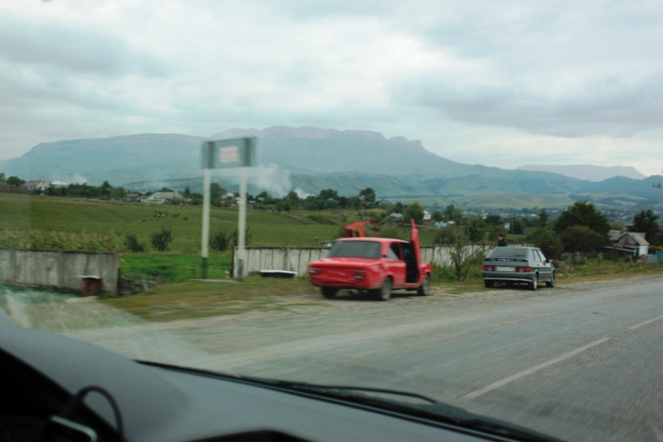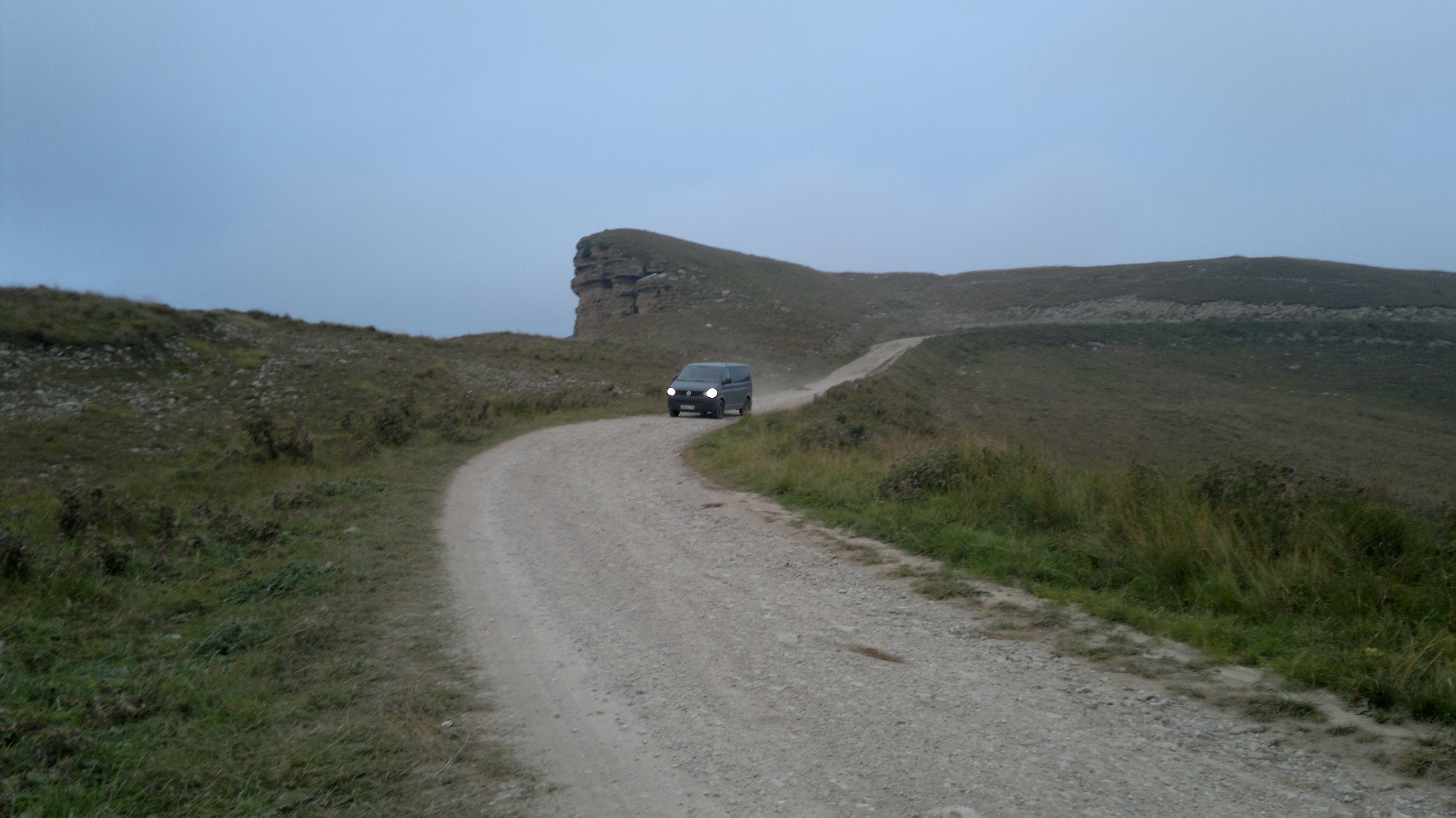 После того как парни с Домбая взяли курс на Анапу, мы через Кисловодск вышли на строящуюся горную дорогу Кисловодск-Эльбрус. Дорога оказалось совсем разбитой и очень стремной. Мы поднялись на максимально высокий перевал (2388 м), а как совсем стемнело поплелись обратно.