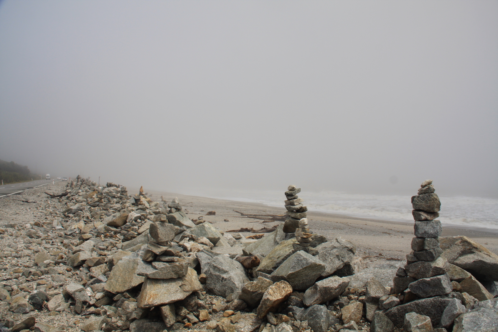 пляж Маори,дымка тумана,ветер с моря,камни,кругом духи