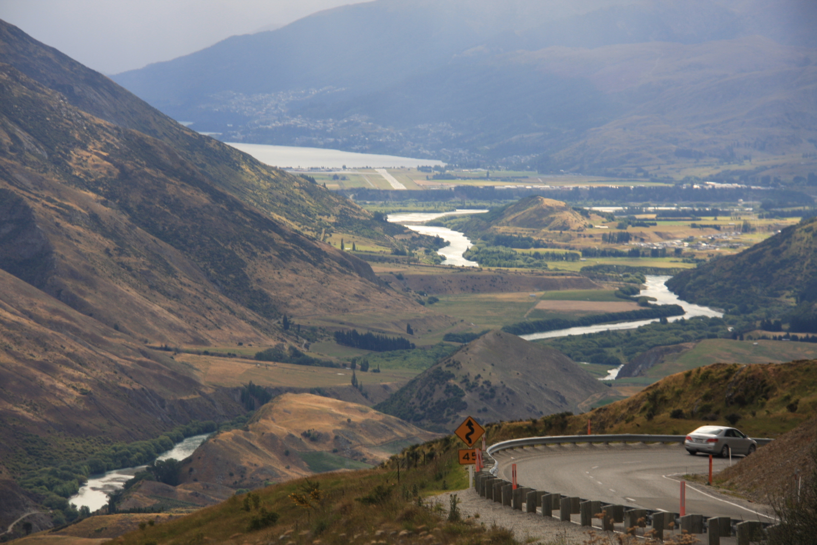 Вообще НЗ удивительная страна, Южный остров меня просто поразил, на маленьком клочке суши, есть и горы(Южные Альпы),дождевые леса, как в тропиках, чуть ли не джунгли ,поля, множество ферм, есть даже оленьи фермы, шкуры и рога отправляют в ОАЭ, фьорды, едешь по серпантину, вроде горы, и тут пляж, бац! только рот открыл, а за поворотам уже озеро с отражающимися в нем горами. Не смотря на кризис, туристов много, говорят раньше еще больше было, на дорогах правда все вежливые, но если местный то свое недовольство он за рулем обязательно продемонстрирует клаксоном, там народ высокомерный, гордый, живут то в сказке, вот и потешаются над туристами, а вообще целиком о людях нельзя говорить ,есть разные, таксисты так те обще везде одинаковые, я давно за ними веду наблюдение, что в Германии,Испании,Швейцарии, что в Литве,про Турцию и другие страны с восточным эээ менталитетом вообще молчу, и в НЗ(поймите прилетел я в сказку и тут вам БАЦ! таксист махинатор,повез дальней дорогой из аэропорта,хорошо я перед прилетом карту посмотрел,говорю сэр вы не правы,едемте любезный коротрой дорогой,иначе чай стынет!) профессия такой отпечаток жуликоватый накладывает.. вай вай наболело,простите,Ну да бог с ними. Вернемся к нашим баранам,тем более в НЗ их почти 40 млн! Вот только как я хотел фото сделать что бы они вокруг машины,стадо,пастух,рога и шерсть кругом,такого фото нет,жаль,все по правильному все за забором.Олег говорил что в Исландии они гуляют по трое,а тут стада но вне досягаемости.После Ванаки мы двинулись в Куинстан, еду ,а тут на перекрестке два знака ,налево Куинстаун,и на право он же?,во думаю шутят,посмотрел на карте ,есть два пути,один для кемперов ,туристов на велосипедах,второй через перевал, посложнее,выбрали дорогу не для туристов! И не пожалел! Это самая красивая дорога по горам!(ну для меня,на Кавказе не был) Если кто катался по о.Тенерифе, знает там есть в горах деревня Маска, серпантин не для слабонервных, во всяком случаи жена отказалась ехать там ,назад той же дорогой, так что пришлось весь остров по кругу обьехать,так вот на Тенерифе пейзаж вроде как лунный,зелени мало, все же вулканический остров, климат, итд, а тут господа виды дух захватывает, жаль что фото не передает всей красоты ,поверти туда стоит хоть раз в жизни слетать, это очень ,очень ,очень яркие места, город Куинстаун вообще невелик, как район Москвы, окружен горами .Озеро ,лес на склонах, подъемник на гору(строили швейцарцы) и атмосфера спокойствия и умиротворения несмотря на толпы туристов. Нам так понравилось, что решили задержаться в городе, потом была дорога до Крайсчерча, через озеро Текапо,поже потряс места!