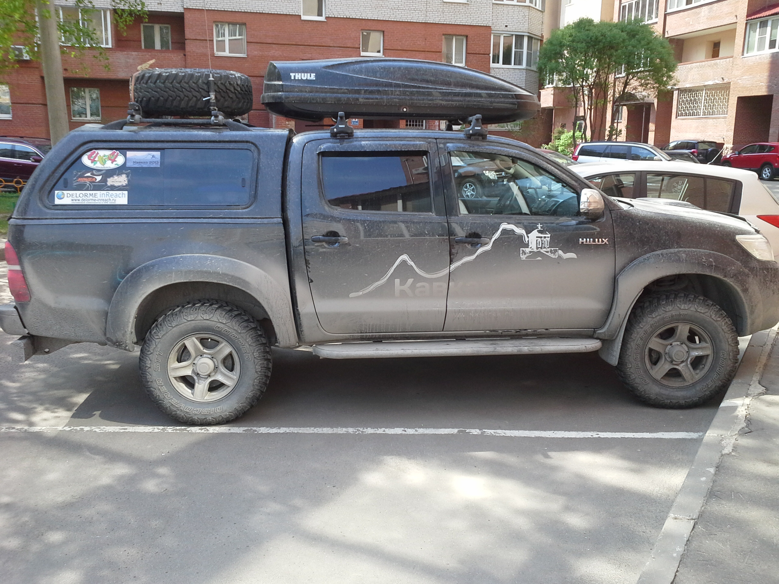 Мы проехали более 6000 км., наше путешествие было великолепным, мы прикоснулись к красивому и приблизились к высокому. Мы отсняли сотни мегабайт фото и видео материала. На наших машинах еще не смыта пыль горных вершин Кавказа сквозь которую еще все-же видны эмблемы нашей экспедиции.