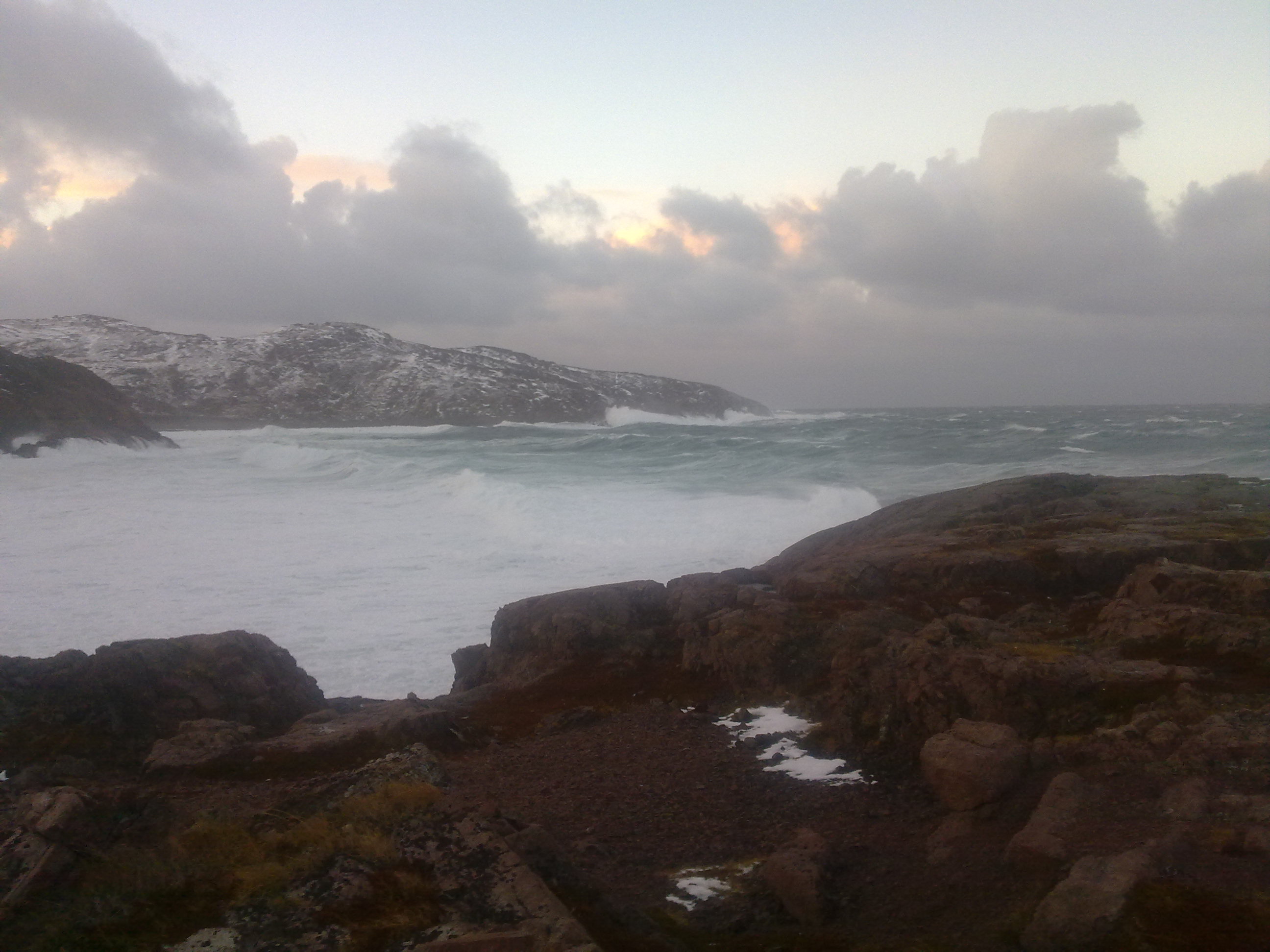 Первый день мы посвятили наглухо утонувшему под снегом и затерявшемуся в тумане перевалу геологов, на второй день с трудом добрались до Териберки. Дорога превратилась в каток, ветер сбивал с ног, дверь в машину приходилось открывать вдвоем. Баренцево море штормило не по-детски. Волны разбивались о верхушки скал. Мы промокли, замерзли, устали от постоянной борьбы с ветром и метелью. Но уже на следущий день так хотелось вернуться обратно! На третий день метель стихла, и мы отправились на верхнетуломское водохранилище.