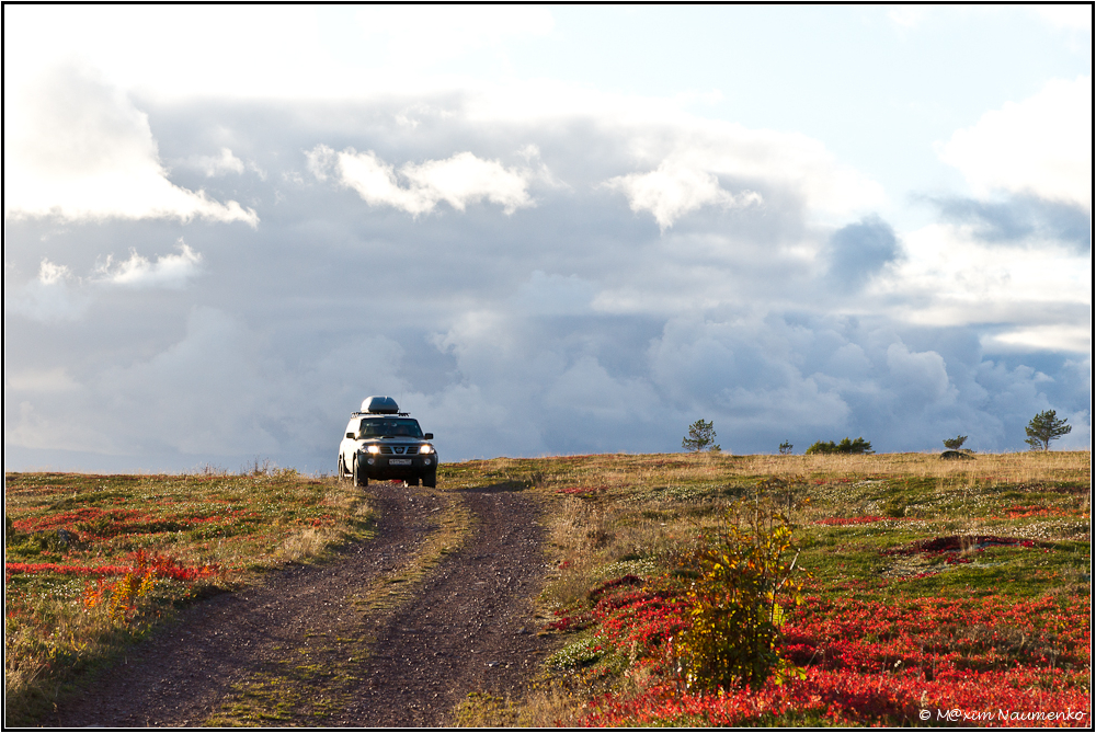 был в наших планах и небольшой внедорожный участок - задумали проехать от Умбы на север напрямую, до п. Октябрьский и далее на Кировск.