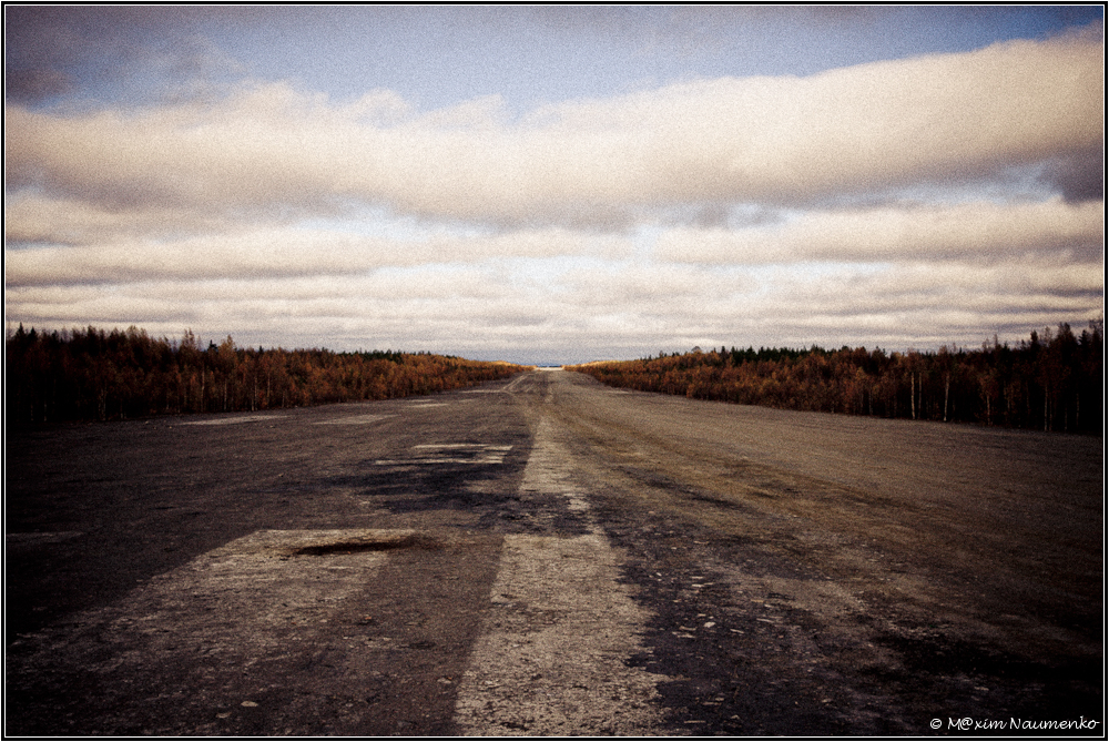 Немного не доезжая до Октябрьского, прямо в тайге есть аэродром.