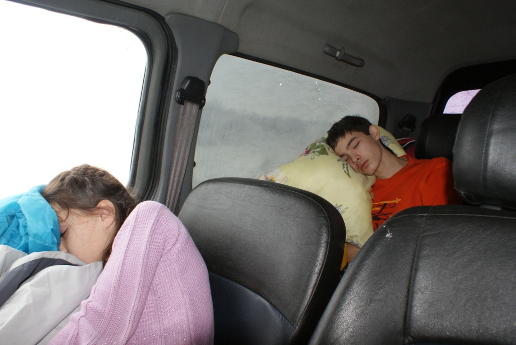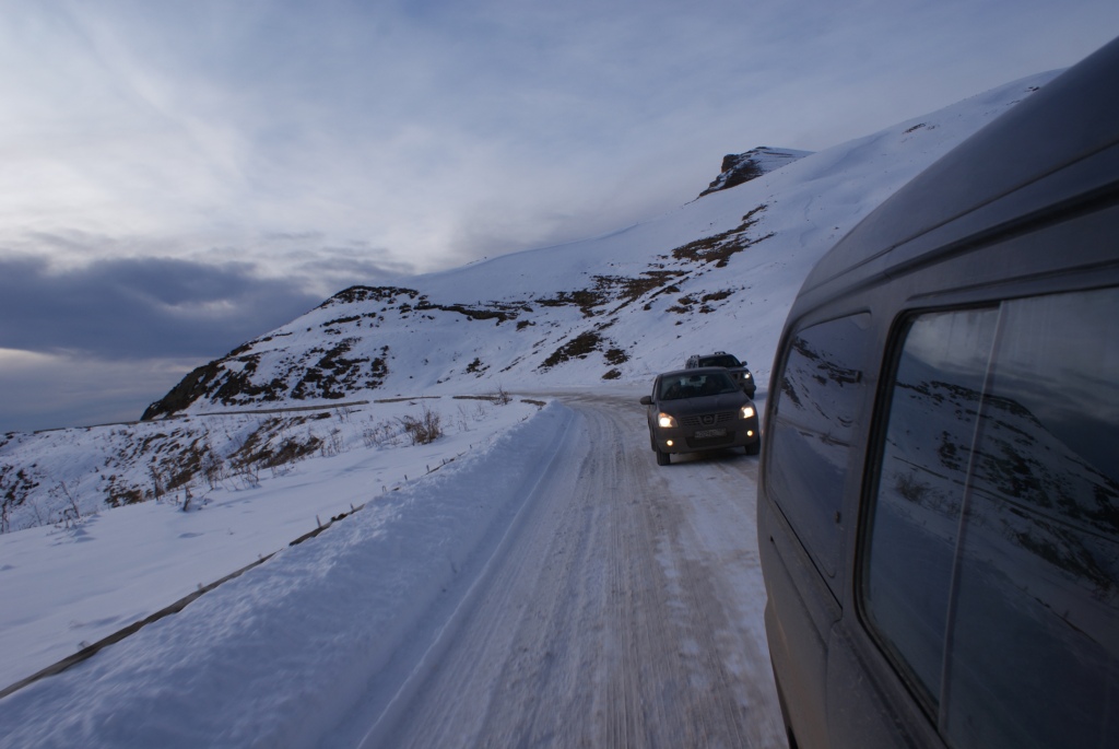 Наши приключения начались с того, что Эскудо пришлось развернуться из-за непонятного кишечного заболевания, нарушевшего все наши планы. :( Остальных участников эта зараза не пробрала. Тру активно спиртовалась всю поездку, боясь заразиться. Дорога "туда" была тяжелой. Метели и гололед не давали гибддшникам наложить лапу на наши кошельки.