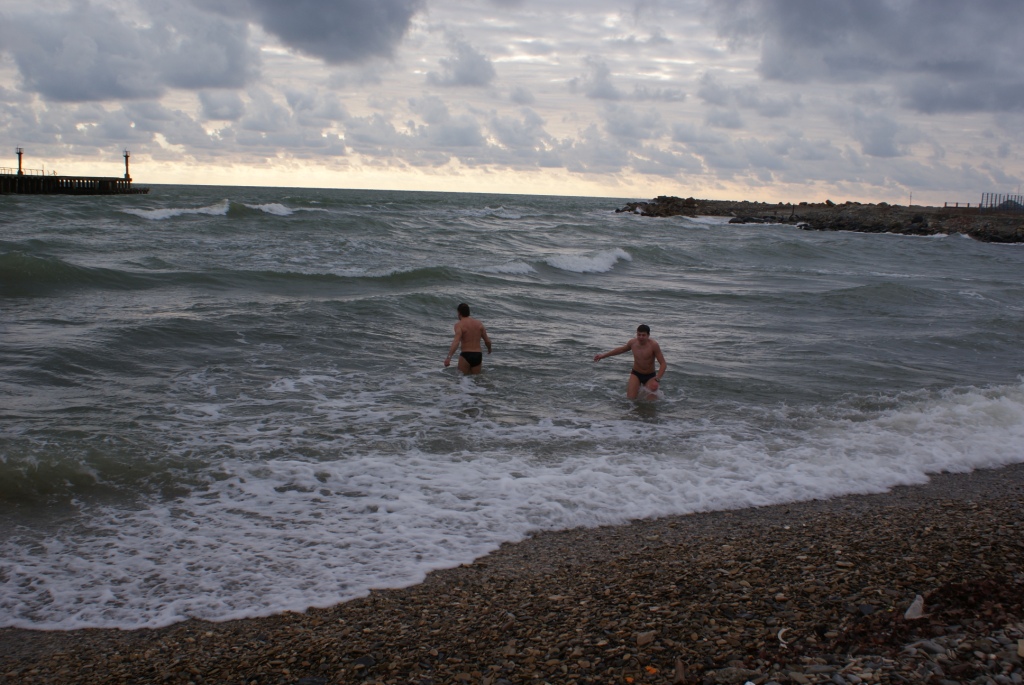 Олег и его сын Пашка ТРЕЗВЫЕ купались в холодных водах черного моря! Респект!!!!