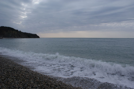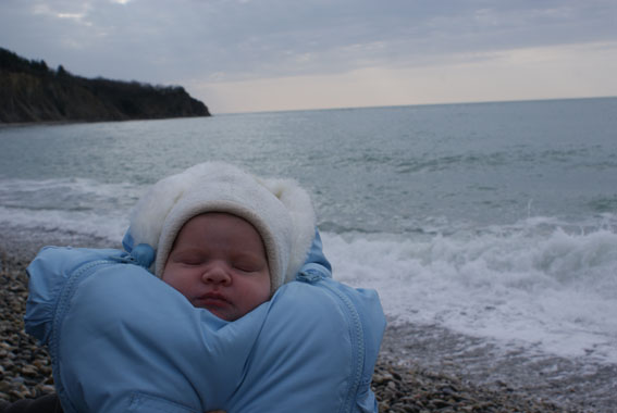 Конечно, в свои обычные 16 часов мы не уложились. Надо было кормить помощника штурмана каждые три часа. Но в субботу в 17.00 мы выехали на побережье и полетели по горному серпантину в поисках ночлега. Конечно январь - не бархатный сезон, поэтому на маленький спрос и мало предложений. Нашим приютом стал оздоровительный комплекс "ОрБита" в Ольгинке. Шикарный пансионат на берегу моря. Комфортабельные номера, коттеджи, а главное - шведский стол!