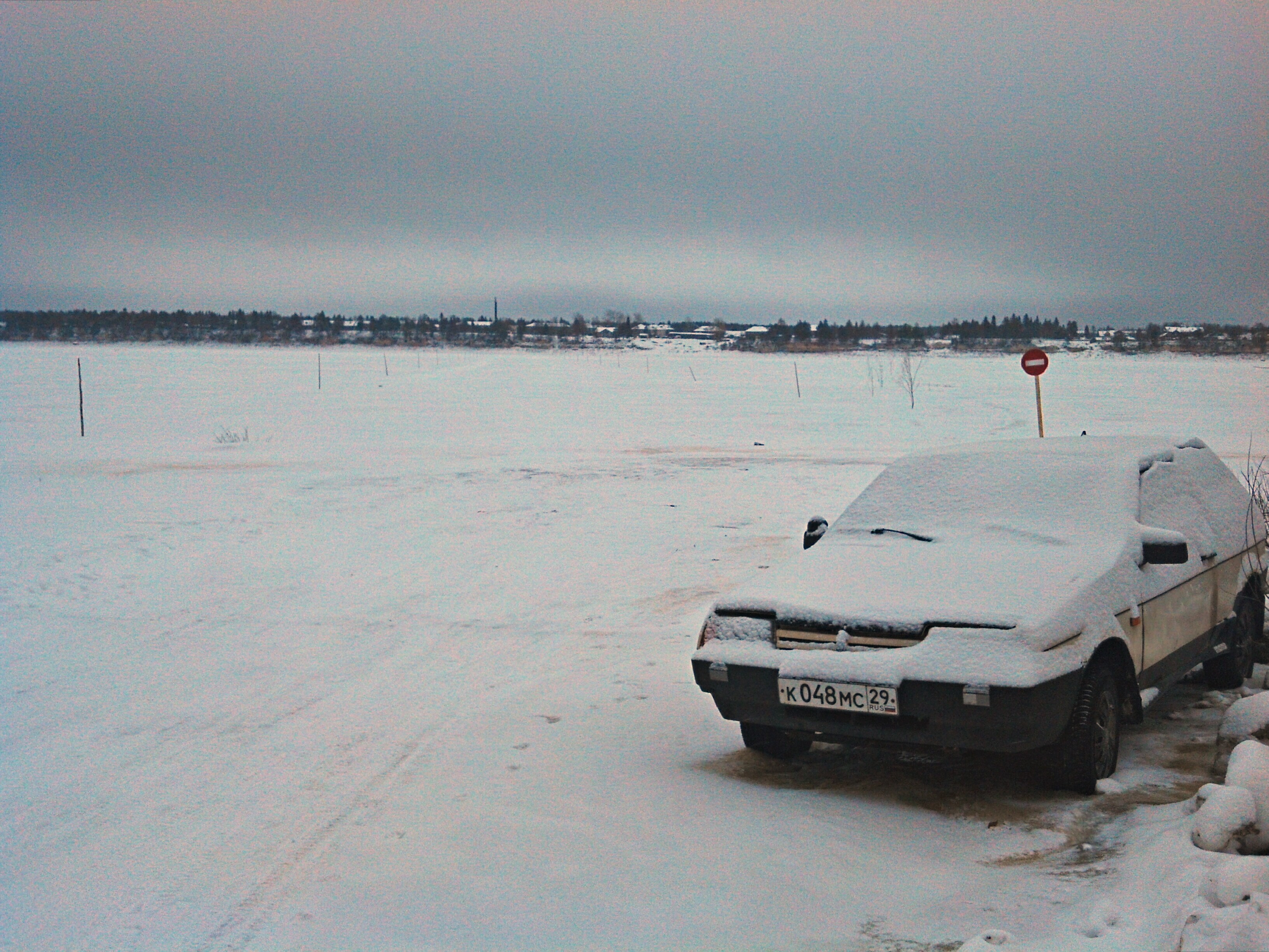 В Усть-Пинеге лёд стоит, но официально переправа не открыта. Местные гоняют, но мелкие легковушки, тяжёлых не видели, а ещё 28 декабря тут шёл дождь. Так что мы перестраховались и сделали крюк через Архангельск.