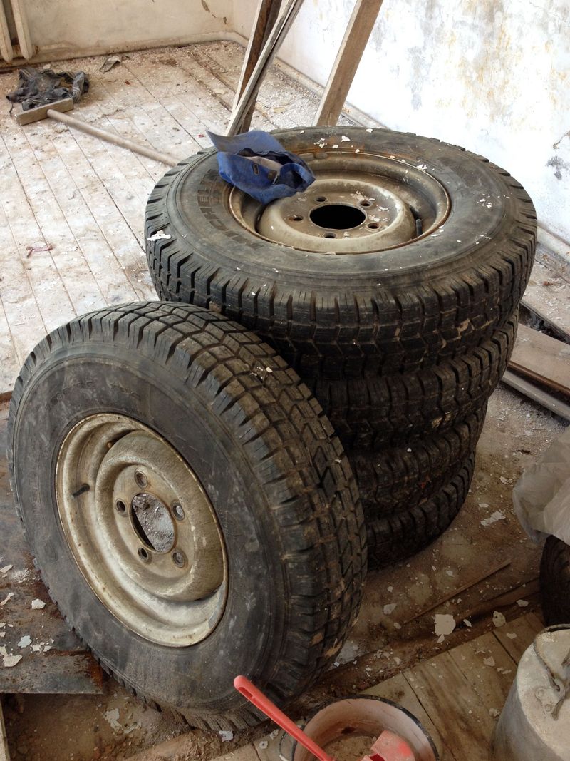 1. 5 штук 235/85/16 штатная резина Дефендера на штамповке. Б/у, но совсем мало, не более 2-3 тыс.км. 15 тыс.руб.