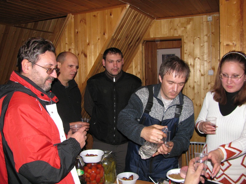 А как красив был полёт Примуса с огурцами...Быстро, неожиданно, но фейерверк из огурцов удался! Женская часть компании аж взвизгнула от неожиданности! :D Примус! Шишка осталась или деревянная стена оказалась не такая твёрдая? :oops: