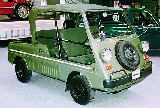 Свою деятельность в автомобильной области мотоциклетная компания "Хонда" начинала в 1962 г. с изготовления микролитражных спортивных автомобилей, за которыми последовали пикапы TN360 на 350 кг грузов с 2-цилиндровым двигателем (354 см3, 30 л.с.) и независимой рычажно-пружинной подвеской. На их базе для японского рынка выпускался грузопассажирский вариант "Вамос" (Vamos) с 4-местным открытым кузовом и небольшой задней грузовой платформой, который поступил на вооружение сил самообороны как легкий патрульный автомобиль. Впоследствии такие машины создавали на основе пикапов "Экти" (Acty) 4x4 с моторами мощностью 30–46 л.с., механической или автоматической коробкой передач. С появлением легких вседорожных мотовездеходов серии TRX, выполненных на мотоциклетных агрегатах, "Хонда" начала их поставки в армии разных стран мира, где они используются для патрулирования и разведки, а при оснащении легким вооружением их относят к классу "автомобилей быстрого внедрения" FAV.
