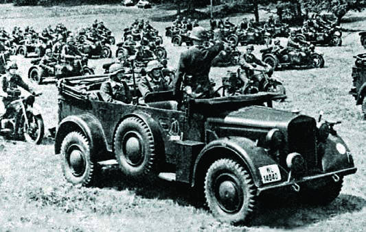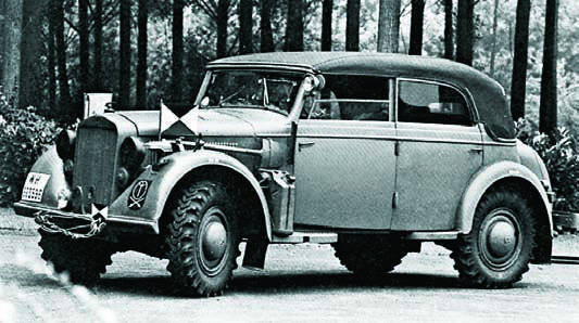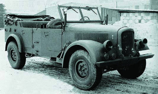 С приходом к власти фашистского режима и милитаризацией экономики страны фирма "Хорьх" уверенно заняла одно из лидирующих мест в производстве многоцелевых легких и средних армейских машин. Эта деятельность началась с создания разведывательных "кюбельвагенов", выполненных на стандартных легковых машин с упрощенными открытыми кузовами без дверей, креплениями для стрелкового оружия, дополнительными канистрами, шанцевым инструментом, специальным навесным оснащением, отсеком для амуниции и "вездеходными" шинами. В 1933–40 гг. на шасси "830" фирма выпускала "кюбельвагены" моделей "830R" и "830Bk" с разными двигателями V8 (3,0–3,5 л, 70–82 л.с.), узлами шасси, видами кузовов и параметрами. В зависимости от комплектации и назначения они имели военные индексы от Kfz.12 до Kfz.17. На некоторых монтировали упрощенные прямоугольные деревометаллические кузова для радиостанций и перевозки раненых. Среди высшего германского офицерского состава популярность приобрели также комфортные легковые автомобили "Хорьх830В", "830BL" и "930V" с разными кузовами.