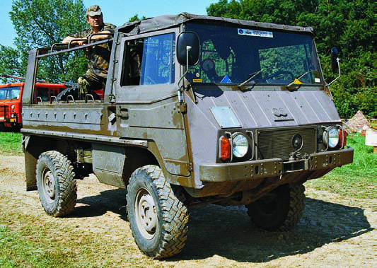 В начале 60-х гг. фирма приступила к проектированию более тяжелого семейства "Пинцгауэр" (Pinzgauer), по общей концепции и внешнему виду схожего с серией "Хафлингер". Прототипы 4x4 были построены и испытаны в 1965–67 гг., через год появился вариант с колесной формулой 6x6. Их серийное производство развернулось в 1973–74 гг. Автомобили "Пинцгауэр" комплектовались рядным 4-цилиндровым бензиновым двигателем воздушного охлаждения (2,5 л, 87 л.с.) и 5-ступенчатой коробкой передач, расположенными в передней части трубчатой рамы, вакуумным усилителем гидропривода тормозов и задней рессорной подвеской. Базовые варианты "710М" (4x4) и "712М" (6x6) грузоподъемностью 1,0 и 1,5 т имели колесную базу 2200 и 2490 мм соответственно, полную массу 3,0–3,9 т и развивали скорость 95–105 км/ч. Эти машины использовались в армиях многих стран мира, а также в войсках ООН. До 1986 г. их построили 20 тыс. штук.