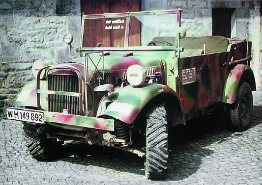 Свое намерение войти в число главных поставщиков военной автотехники фирма продемонстрировала еще в период затишья в этой области, начав в середине 20-х гг. работу над перспективным грузопассажирским автомобилем повышенной проходимости "Хорьх-8 Тип 40" (6x6). Он получил рядный 8-цилиндровый мотор мощностью 65 л.с., 4-ступенчатую коробку передач, 2-ступенчатый редуктор-демультипликатор и неразрезные ведущие мосты с блокируемыми дифференциалами, подвешенные на двух продольных балансирных рессорах. В 1926–28 гг. их сделали 60 экземпляров, но в дальнейшем 3-осный "Хорьх" развития не получил.