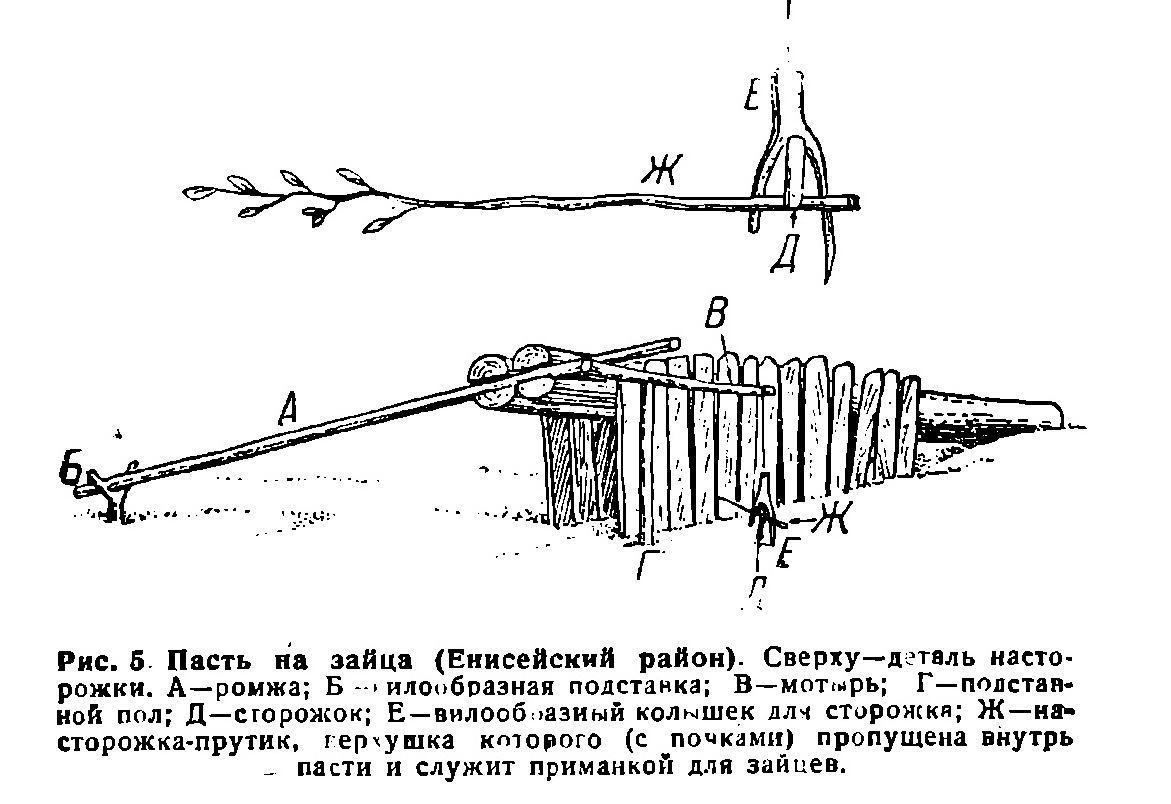 В стволе дерева делается щель, в которую потом очень крепко вбиваются колышки. Два колышка следует вбить на одном уровне, третий колышек вбивается на 40-45 см ниже между ними. Таким образом, верхние колышки служат основанием для крышки из веток ели, а на нижний колышек ставится капкан.