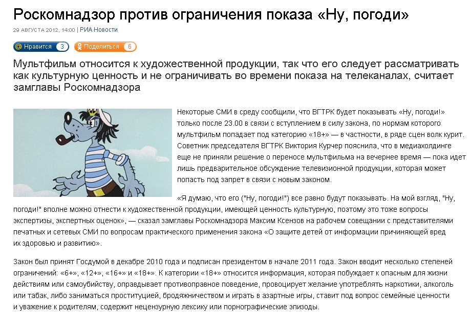 Что дальше? Запрет показа мультфильмов по следующим причинам???: